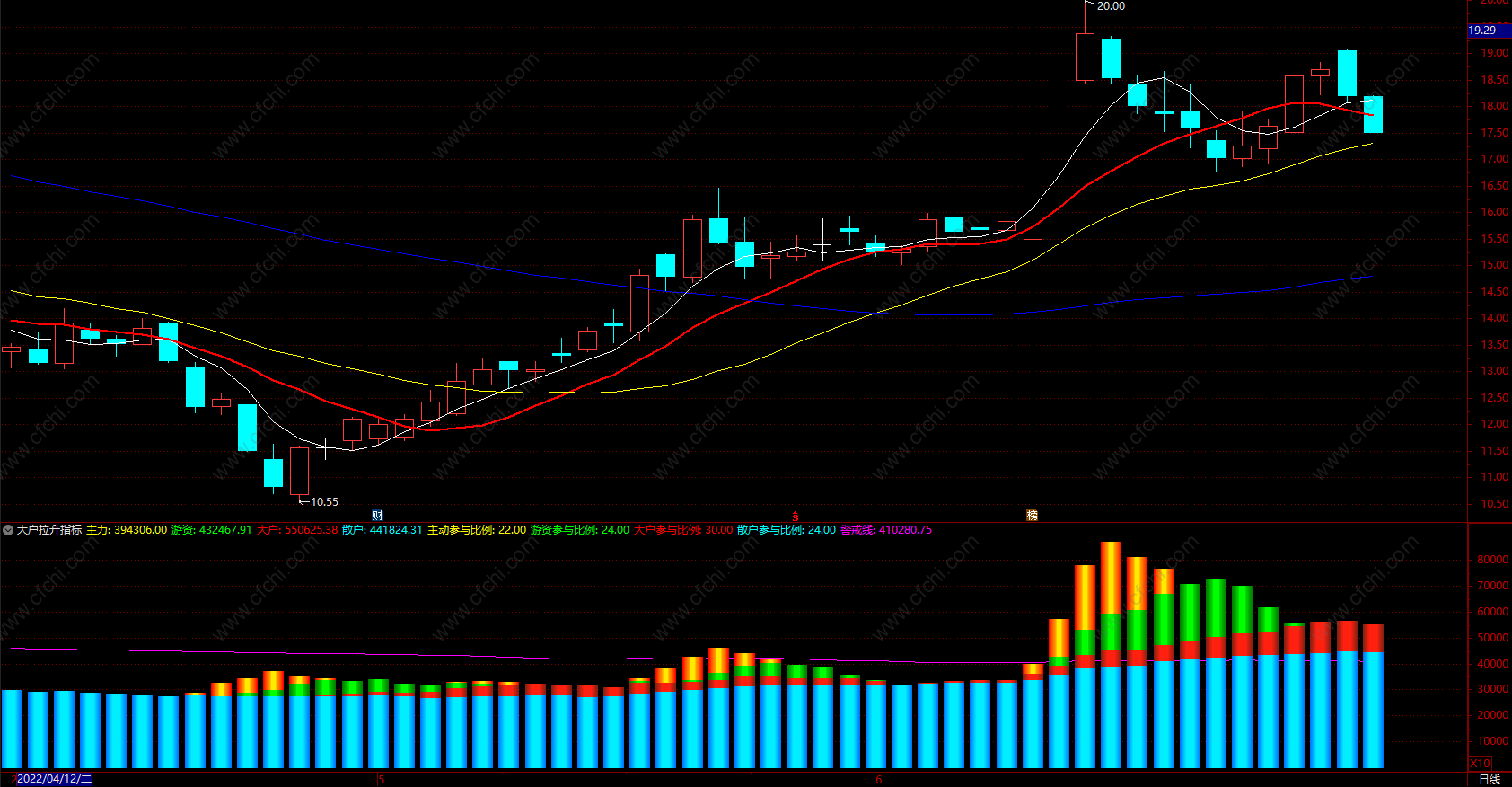 散户:MA(A,32),NODRAW,COLORFFFF00;