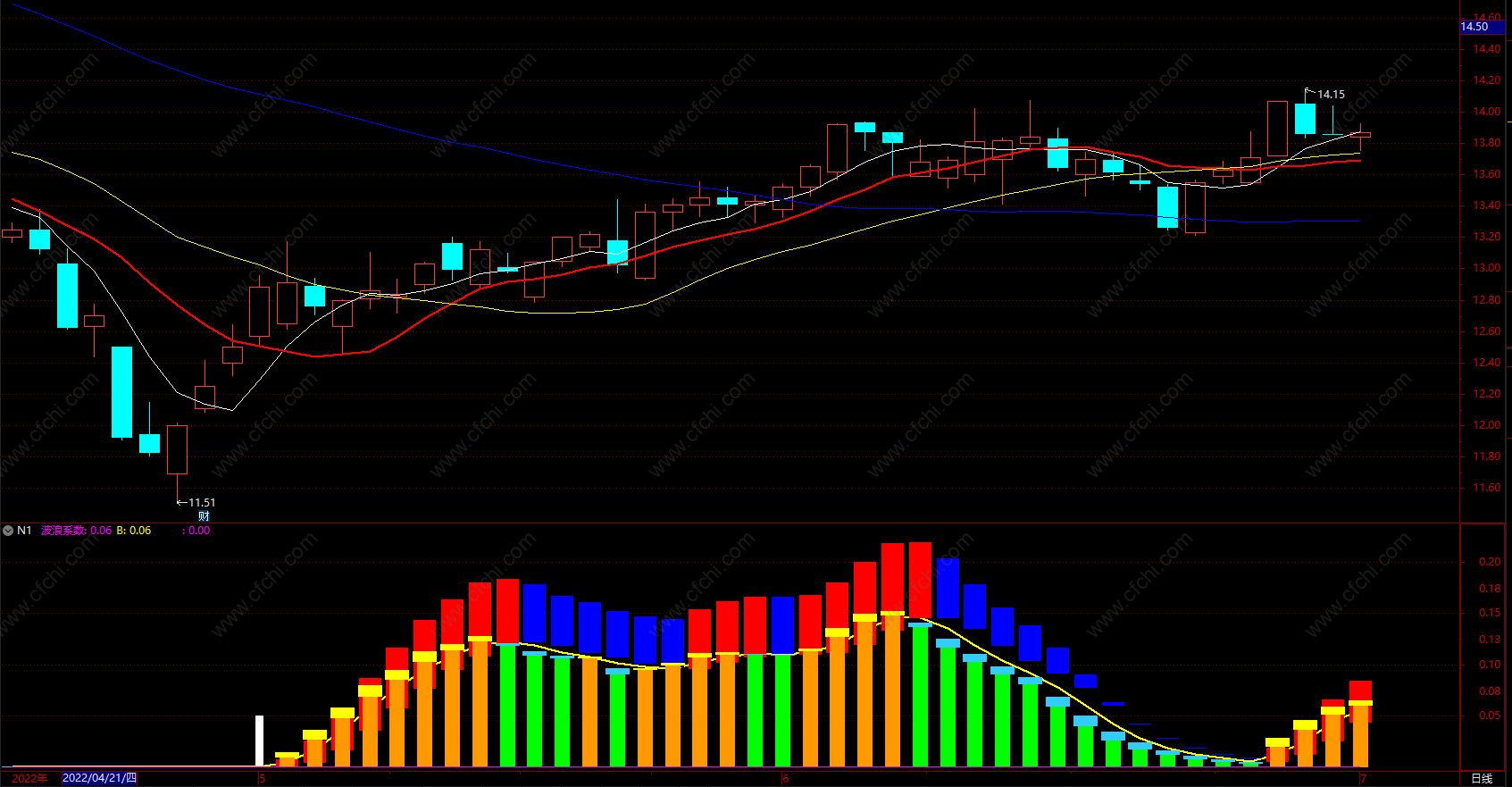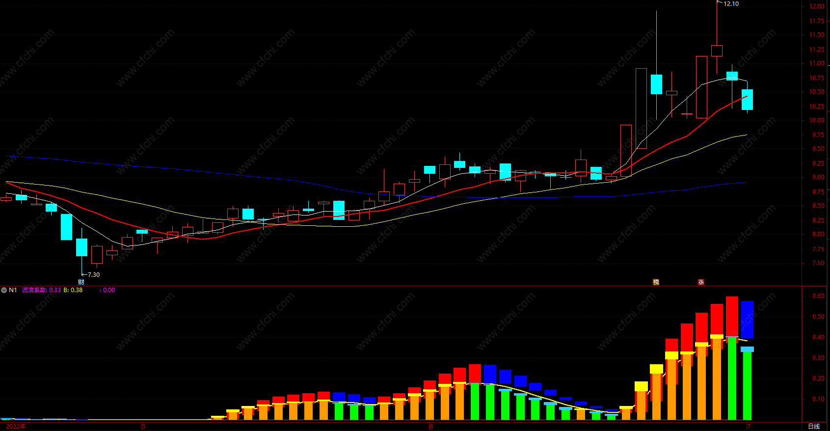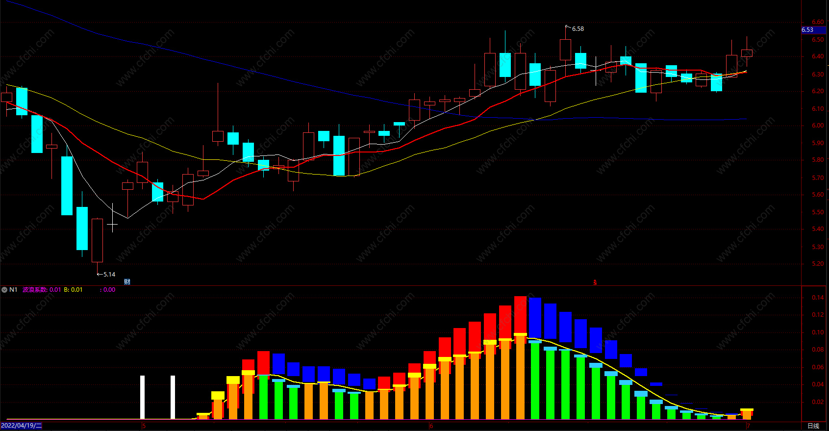 波浪系数:VAR15*VAR13,STICK,COLORFF00FF;