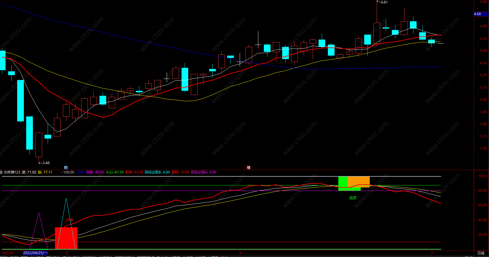 财富池指标公式网(www.cfchi.com)提醒您:指标公式是通过数学逻辑角度编写而来,仅是股票分析环节中的一个辅助工具,对股票选股效率和分析便捷上起到一定的作用,股市是具有不确定性和不可预测性的,请正常对待和使用指标公式!