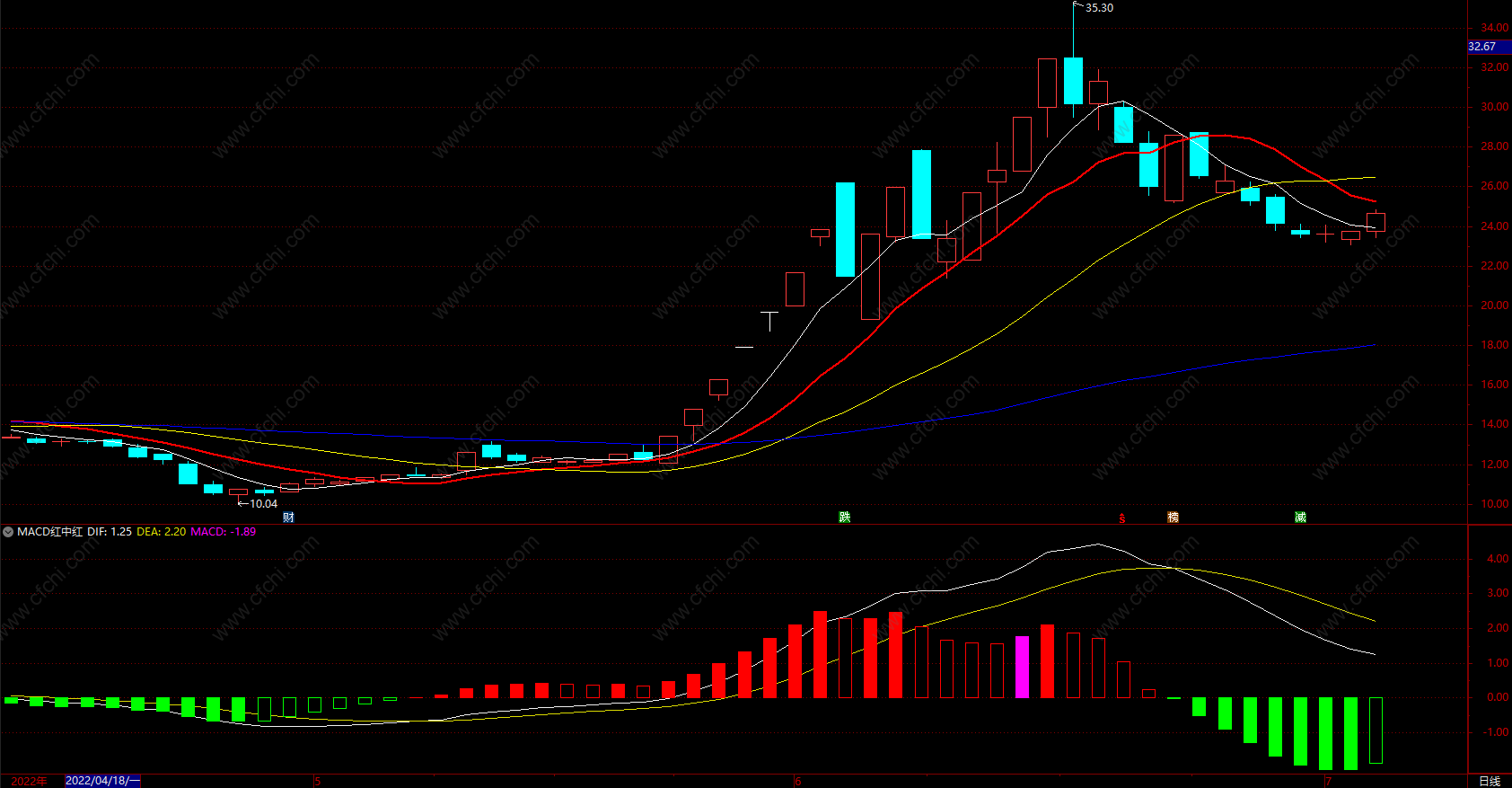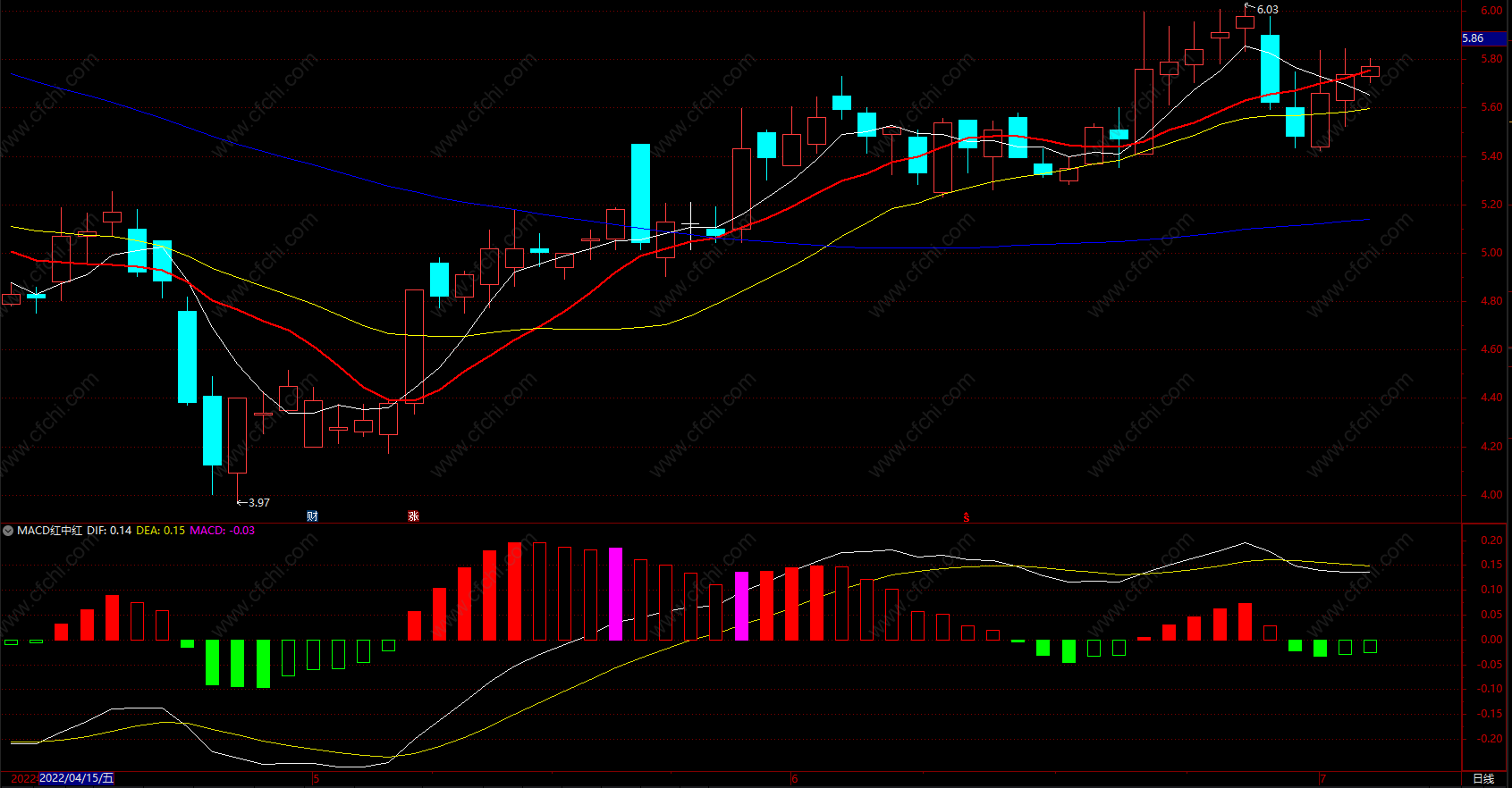MACD 红中红指标,出现粉色时关注,可适当介入