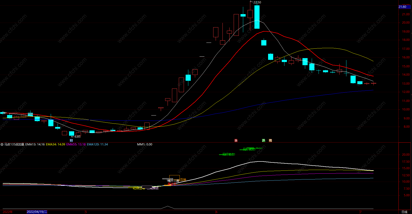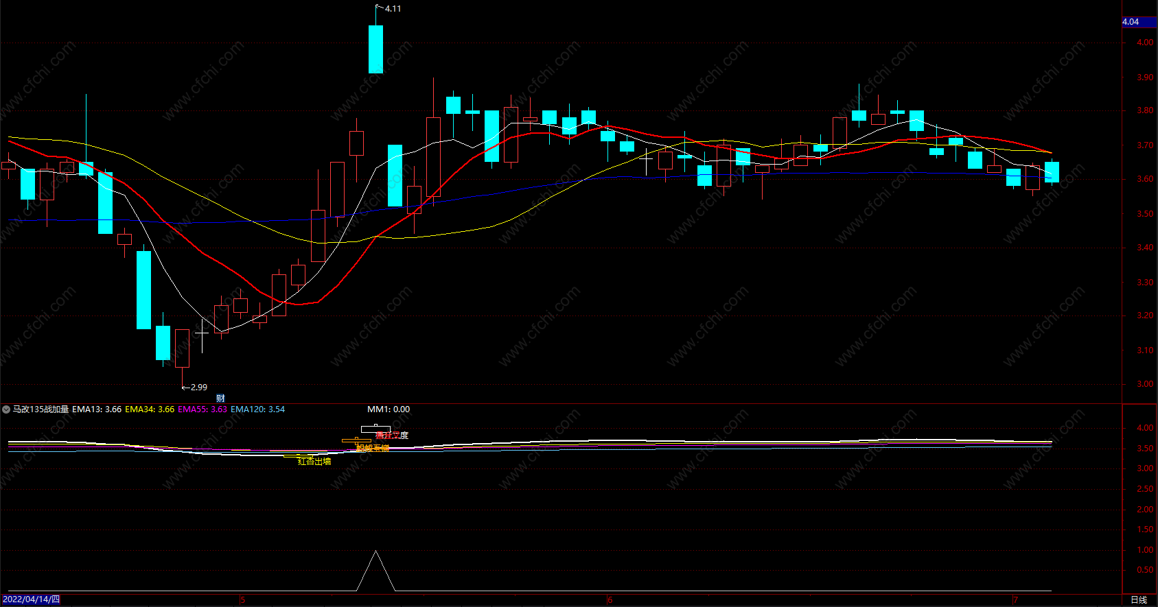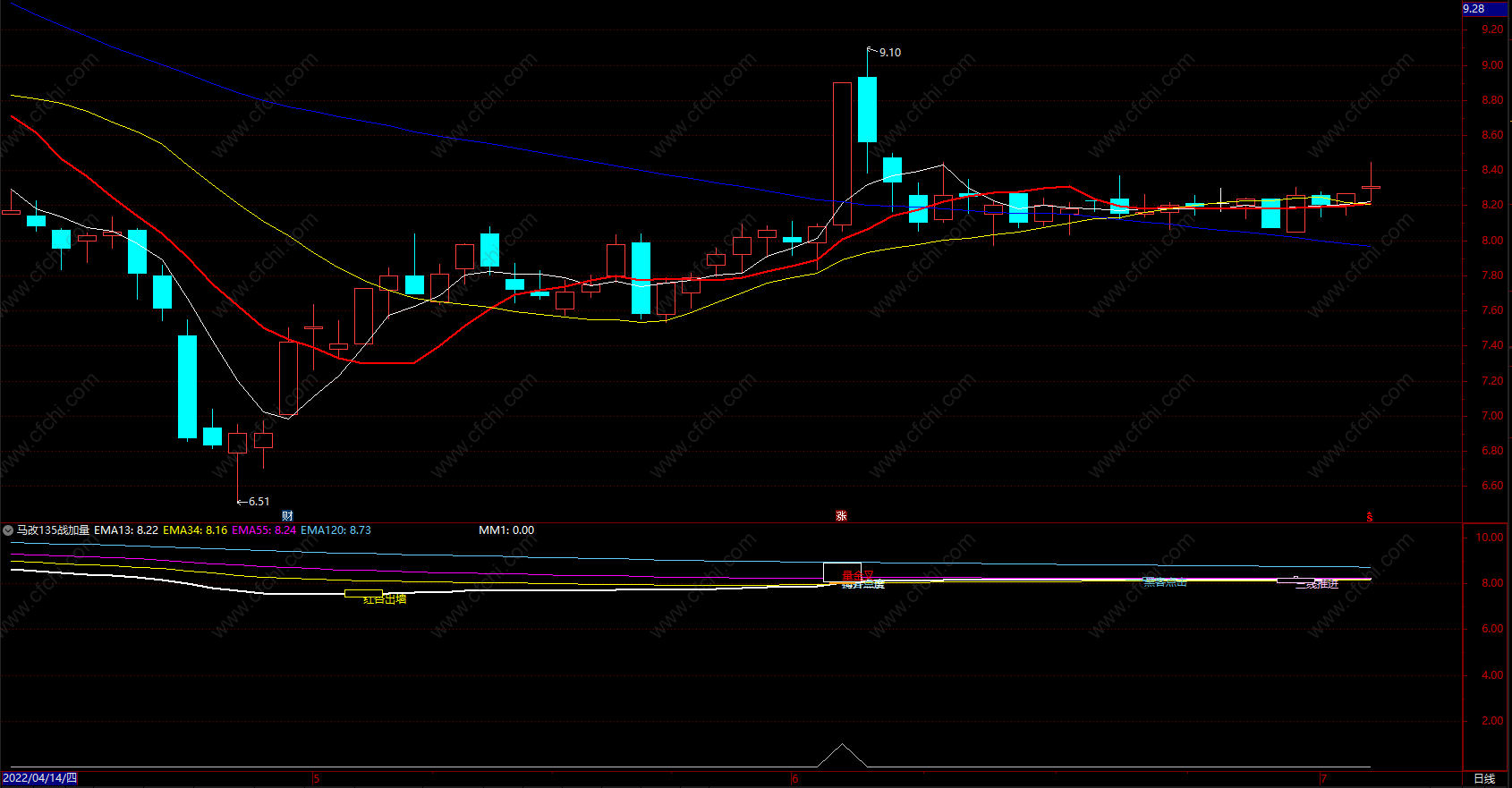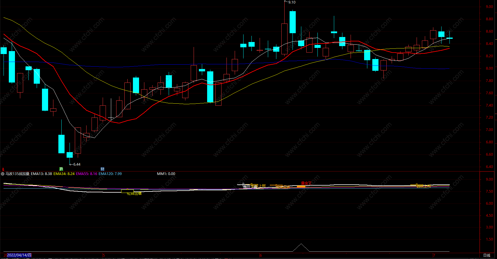 马改135战加量金叉 通达信均线金叉指标 副图 源码