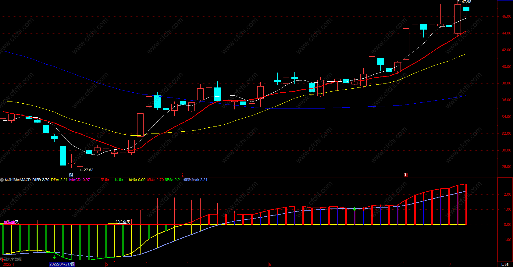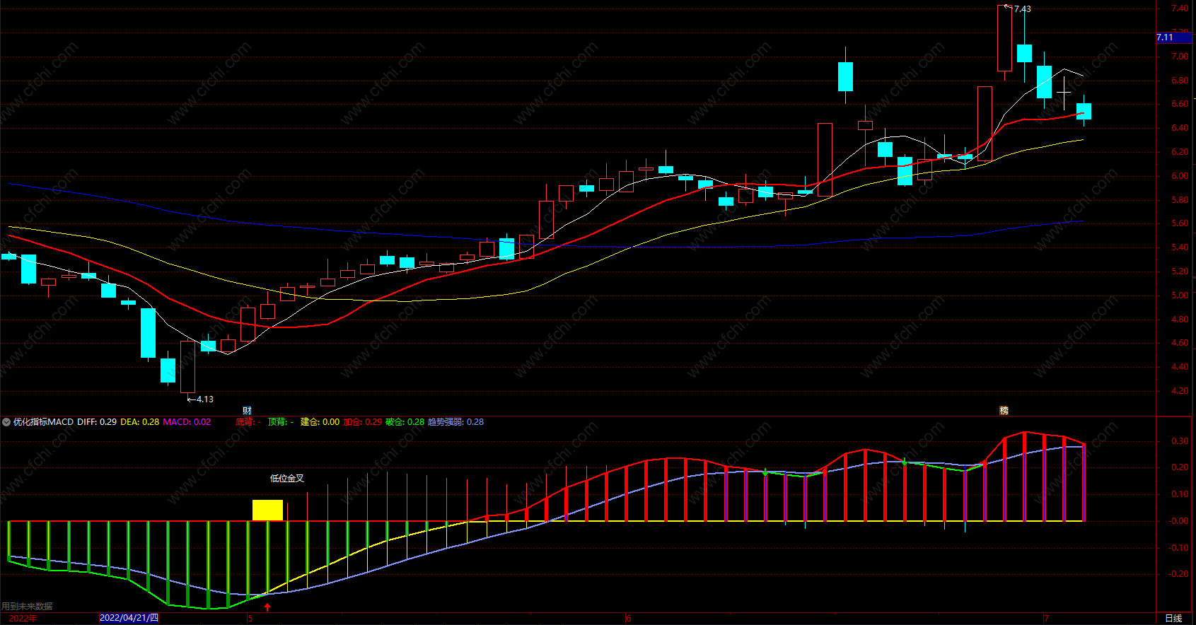 优化指标MACD 通达信kdj低位金叉和高位金叉 副图 源码