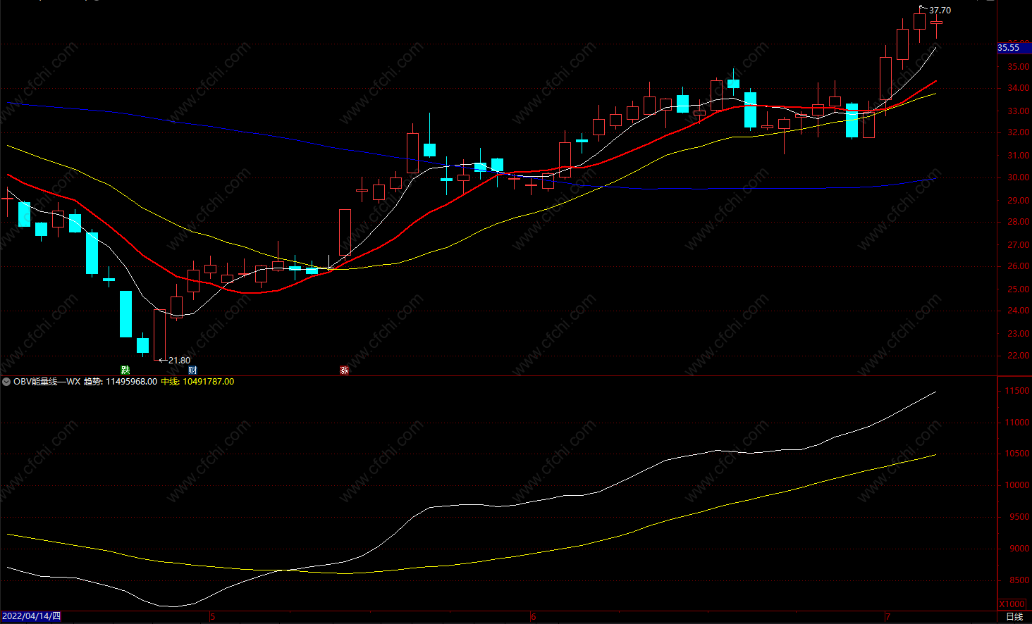 趋势:MA(OBV,5);中线:MA(OBV,30);