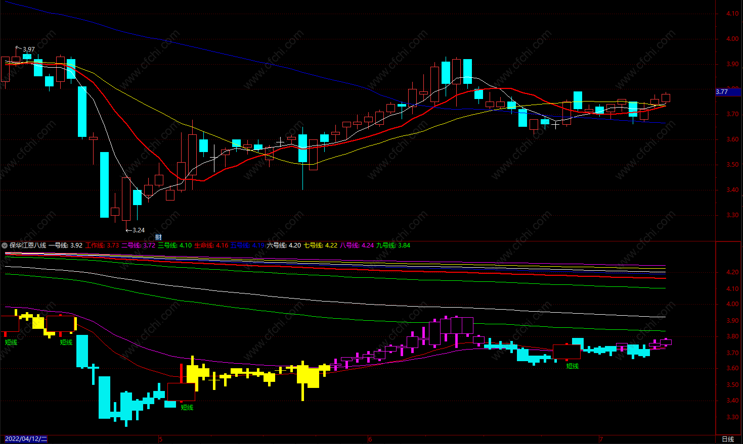 殷保华江恩八线, 通达信超级短线指标 副图 源码