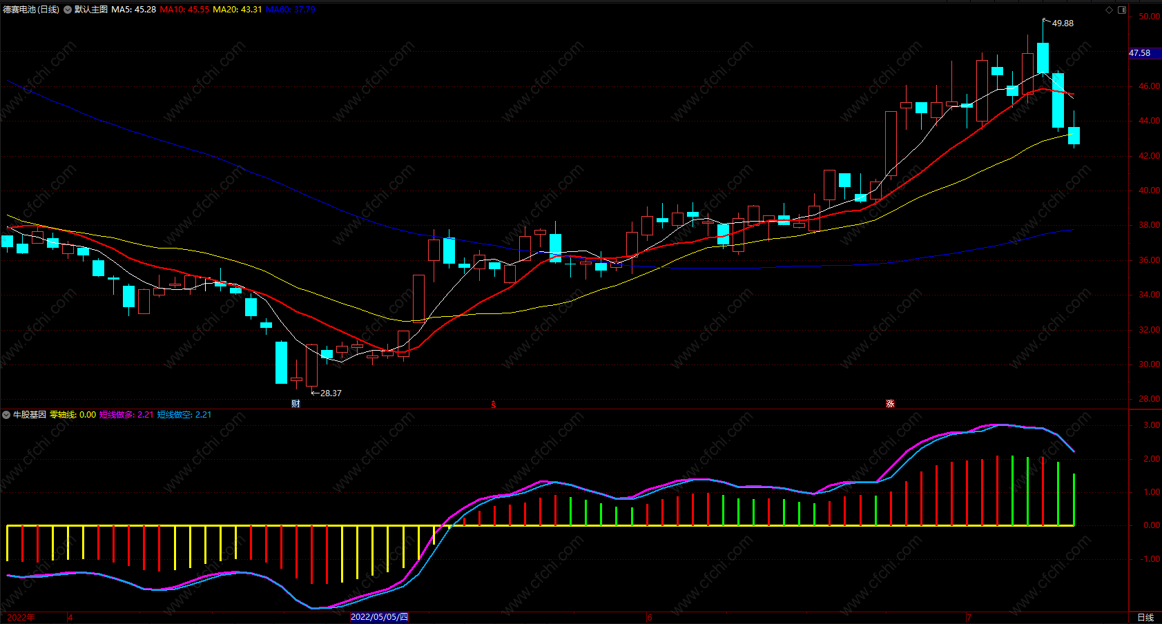 3,做多线上穿零轴。并且MA多头排列,买入