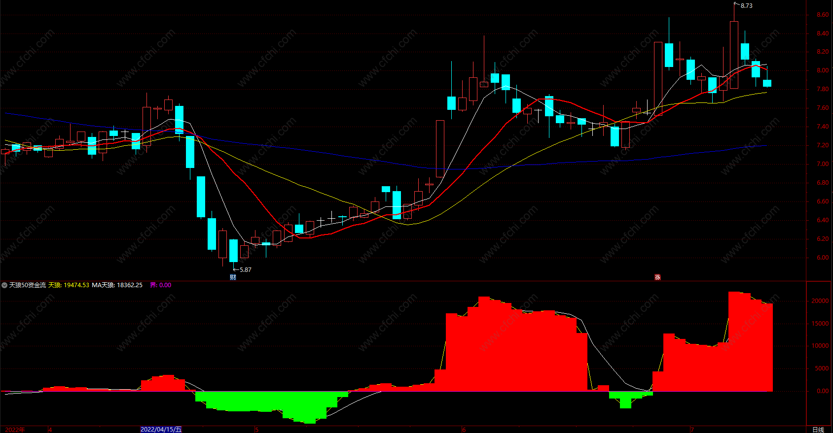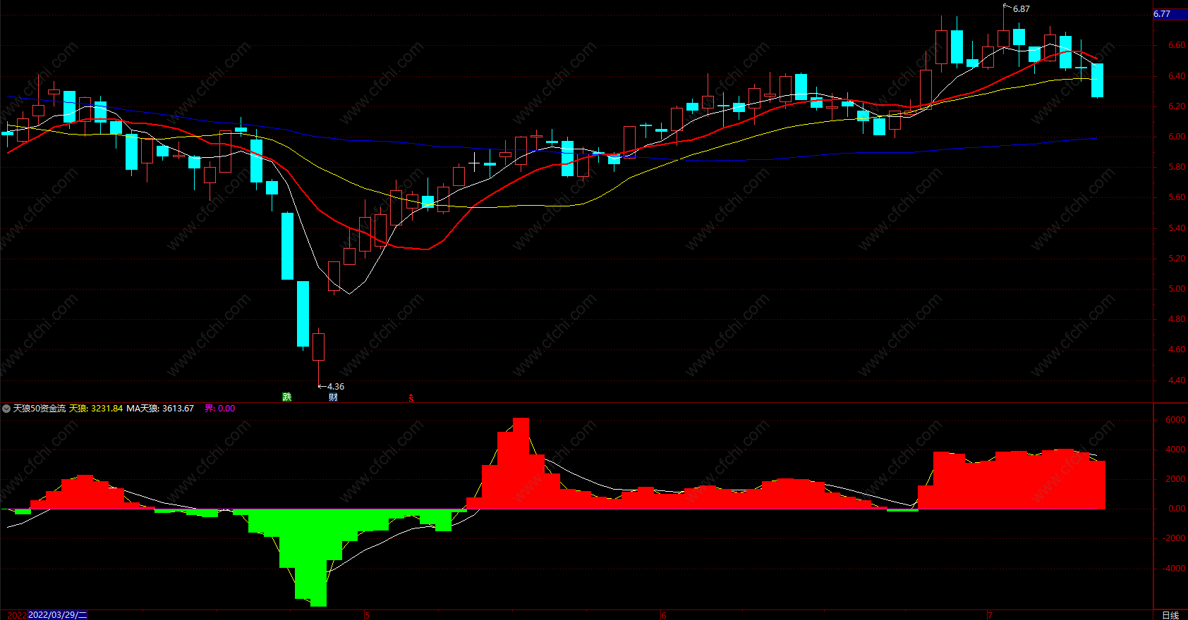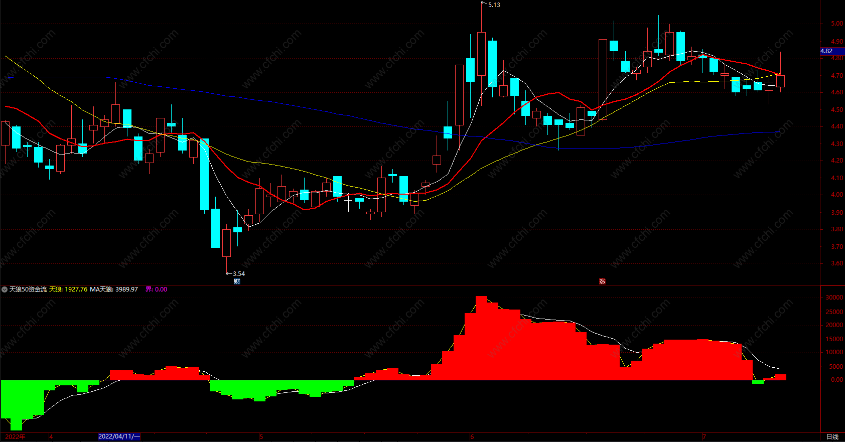 天狼50资金流 通达信主力资金流买量卖量指标公式源码 副图