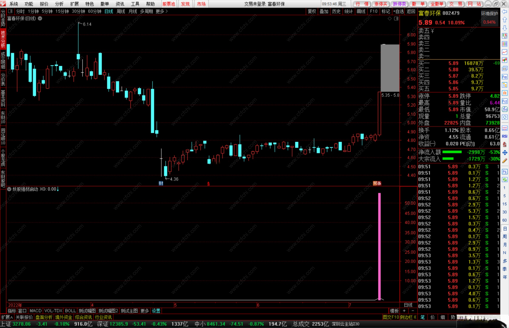 说明:指标用到 DYNAINFO(7) 即时行情数据函数,不喜勿用