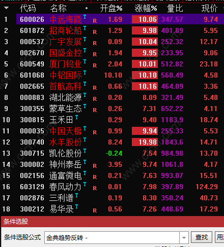 (金典趋势反转幅图选股指标公式!!!祝你股市长泓!!!)