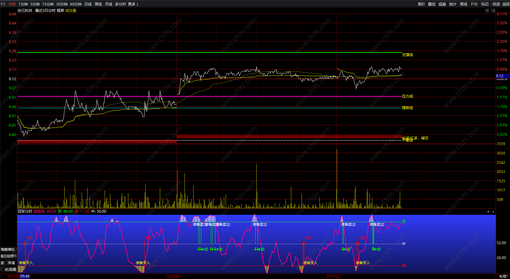冠军分时 通达信分时多空指标公式图解 副图 源码