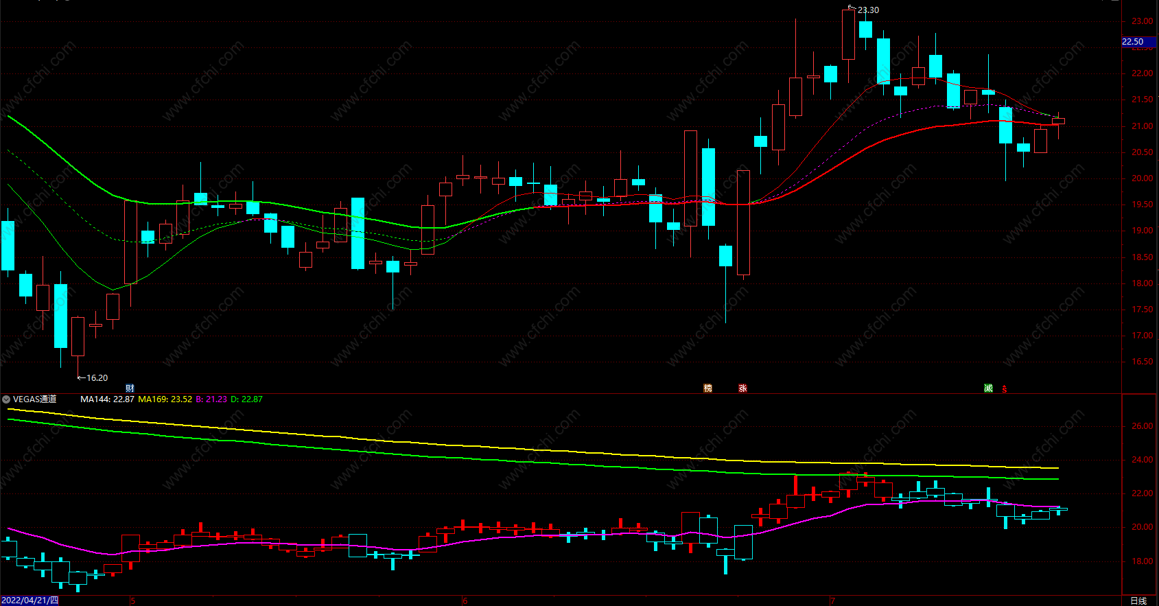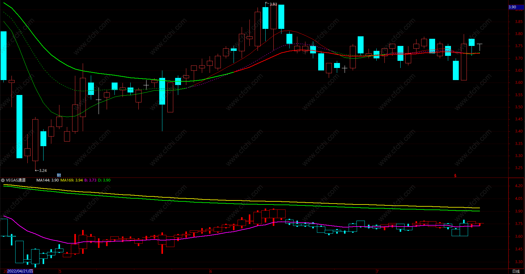 (VEGAS通道 通达信实用波段买卖点副图指标 副图 源码)