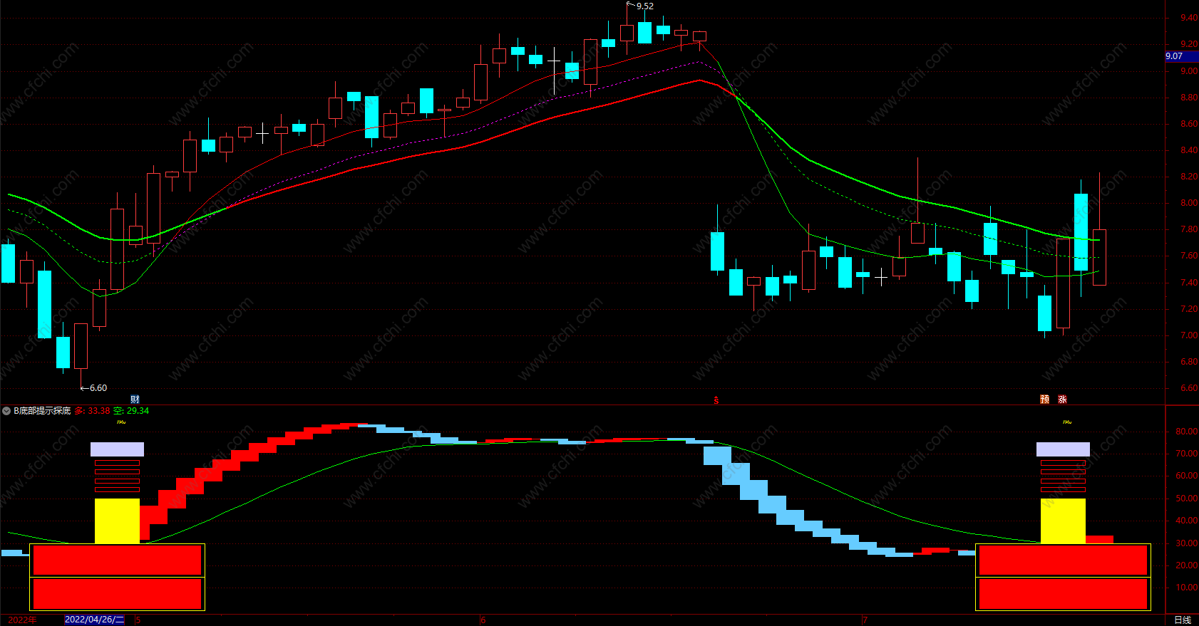 底部提示探底指标 通达信底部买多加仓指标公式 副图 源码