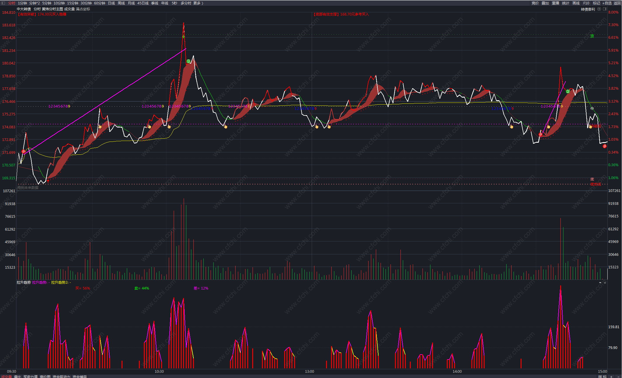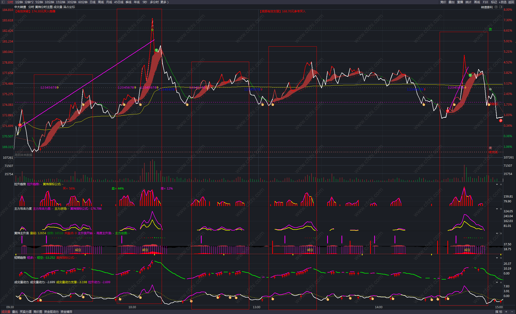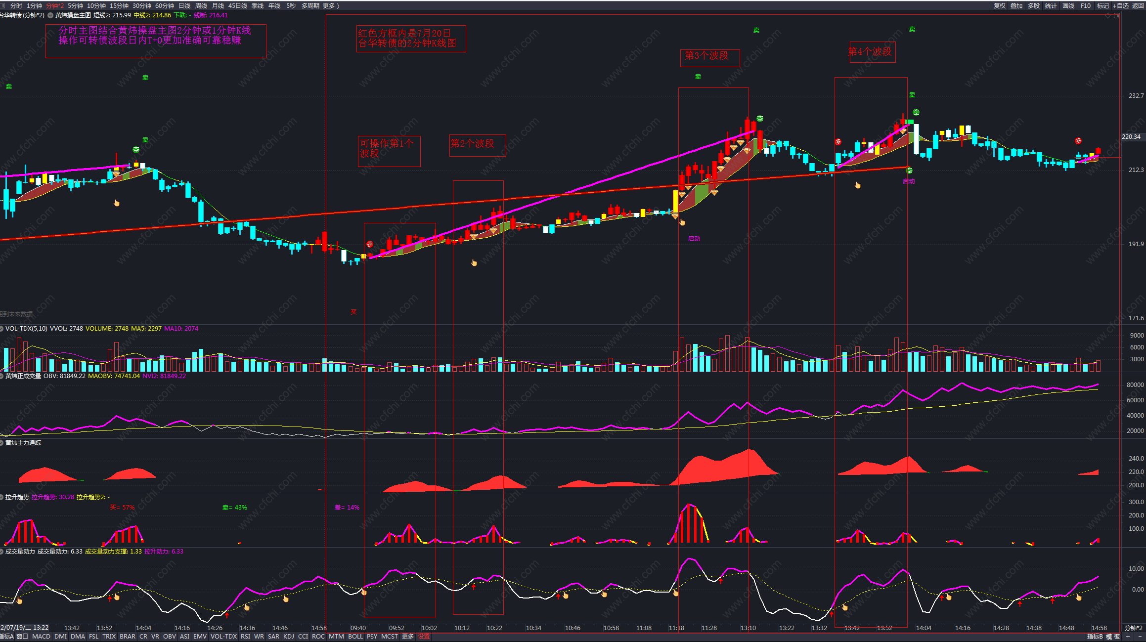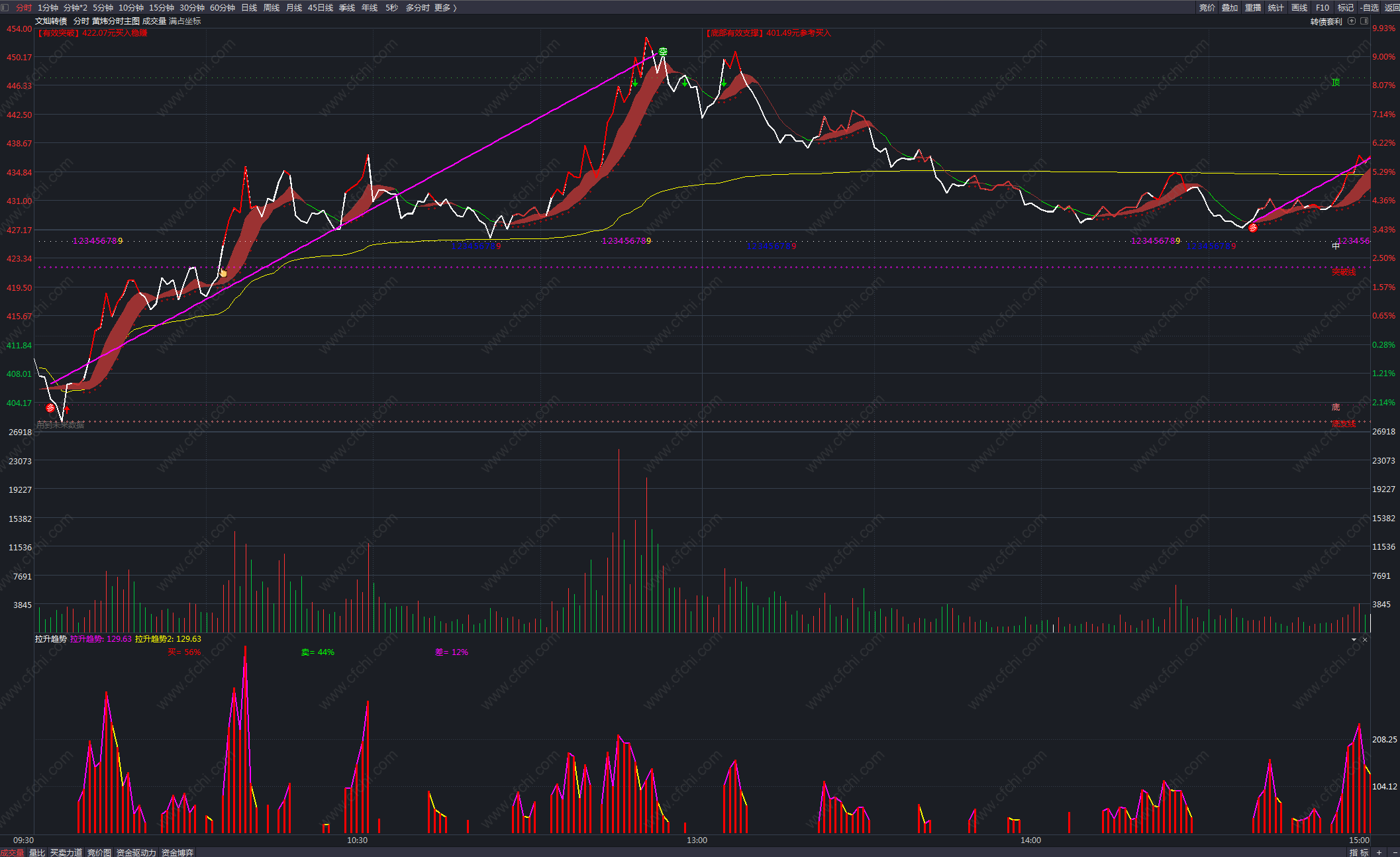 (拉升趋势副图,黄炜指标公式,可用于分时副图和日K线等副图,可用于股票,可转债,期货等做T+0.)