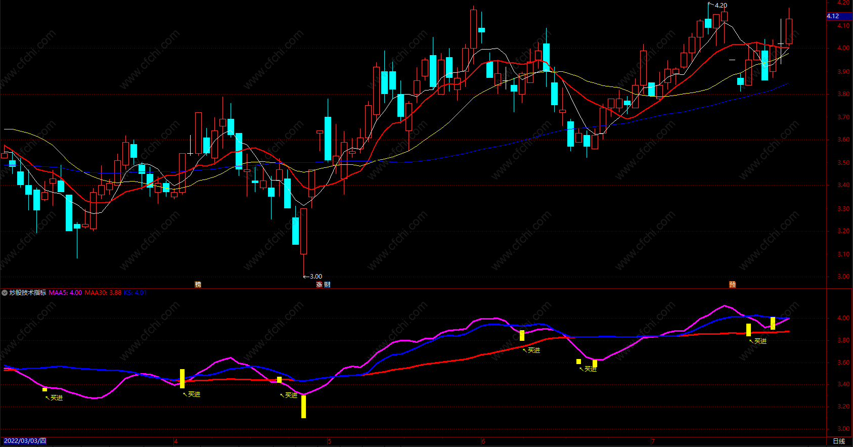 (炒股技术指标 通达信简单趋势买卖点副图指标公式源码)
