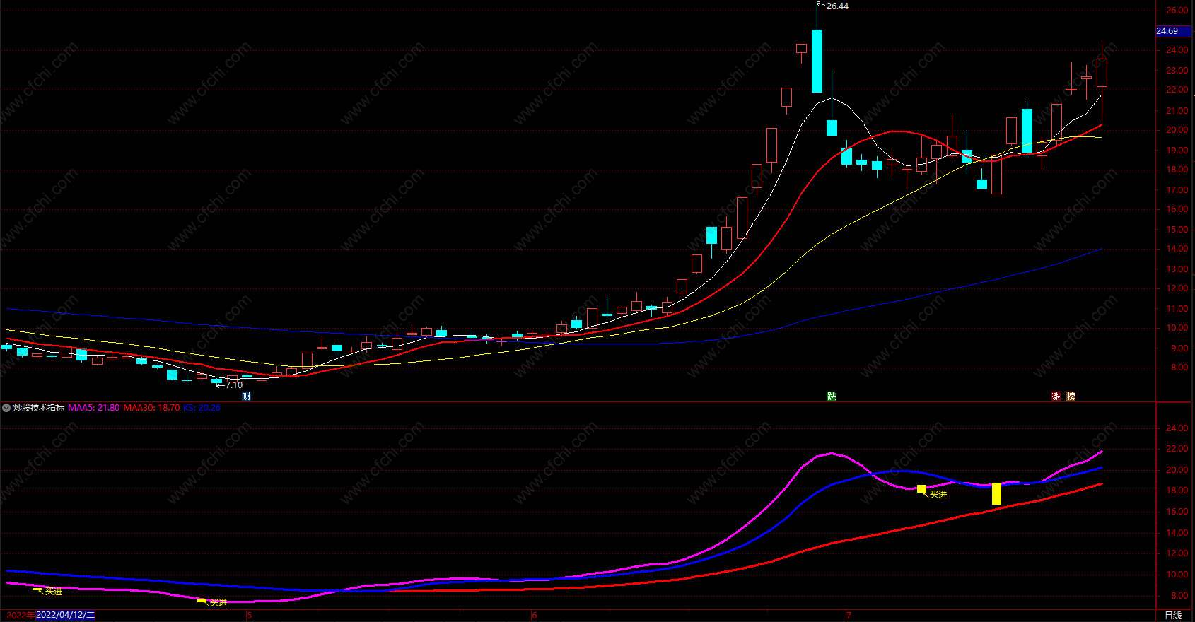 财富池指标公式网(www.cfchi.com)提醒您:指标公式是通过数学逻辑角度编写而来,仅是股票分析环节中的一个辅助工具,对股票选股效率和分析便捷上起到一定的作用,股市是具有不确定性和不可预测性的,请正常对待和使用指标公式!