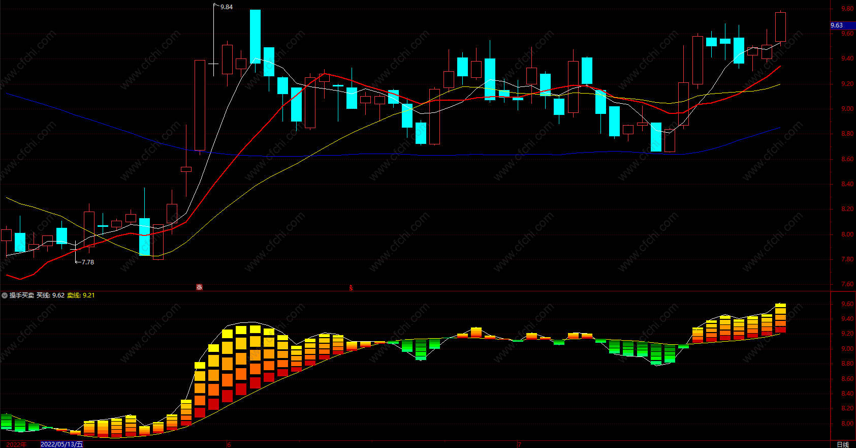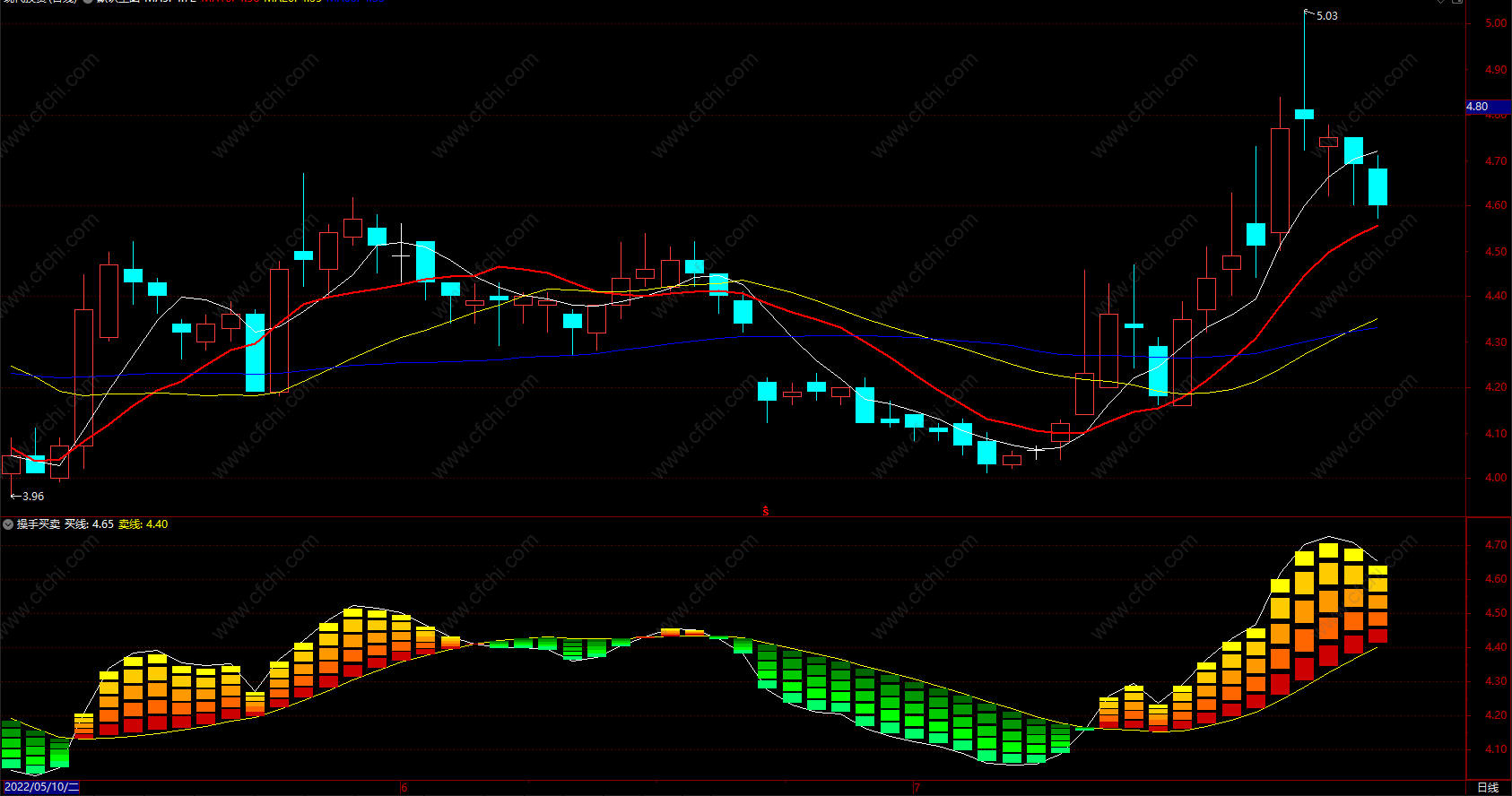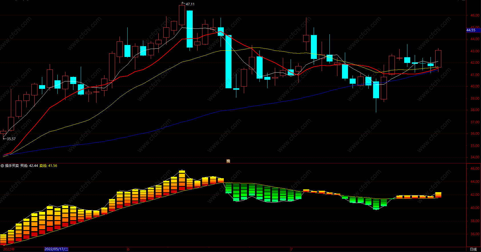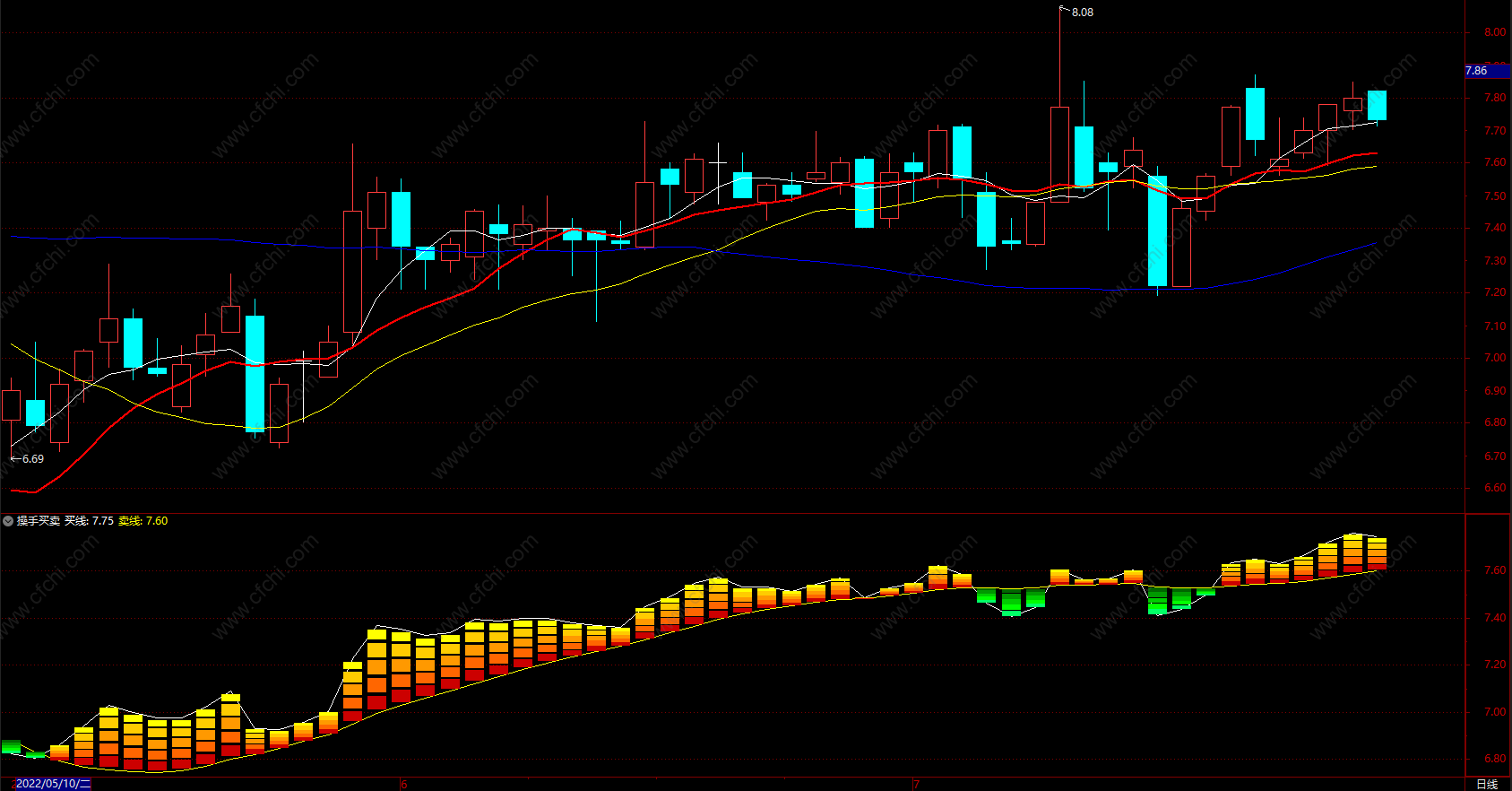 1.白线为买线,黄线为卖线。