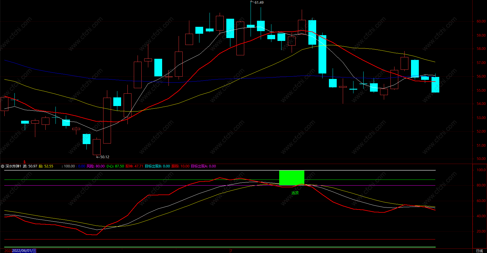 财富池指标公式网(www.cfchi.com)提醒您:指标公式是通过数学逻辑角度编写而来,仅是股票分析环节中的一个辅助工具,对股票选股效率和分析便捷上起到一定的作用,股市是具有不确定性和不可预测性的,请正常对待和使用指标公式!
