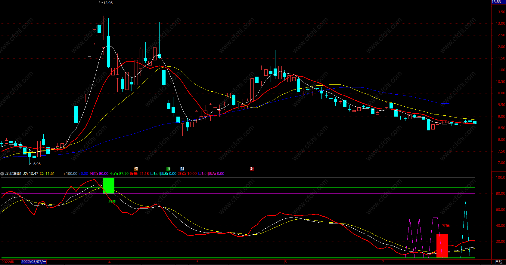 深水炸弹 通达信抄底逃顶波段副图指标公式 副图 源码