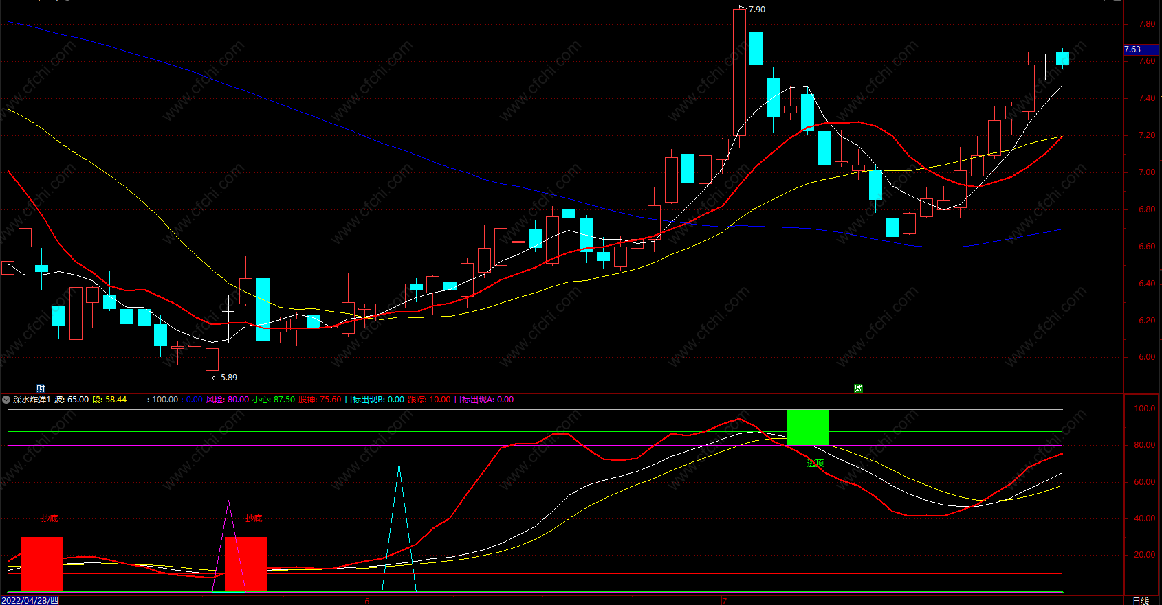 (深水炸弹 通达信抄底逃顶波段副图指标公式 副图 源码)