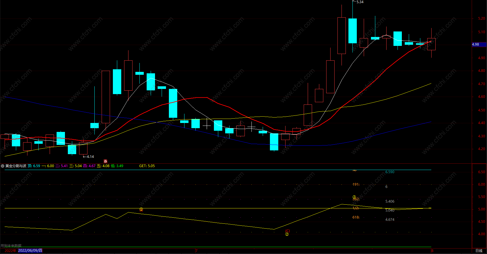 (黄金分割与波浪尺 通达信顶底通道指标副图 源码)