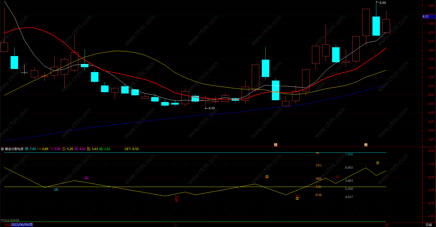 黄金分割与波浪尺 通达信顶底通道指标副图 源码