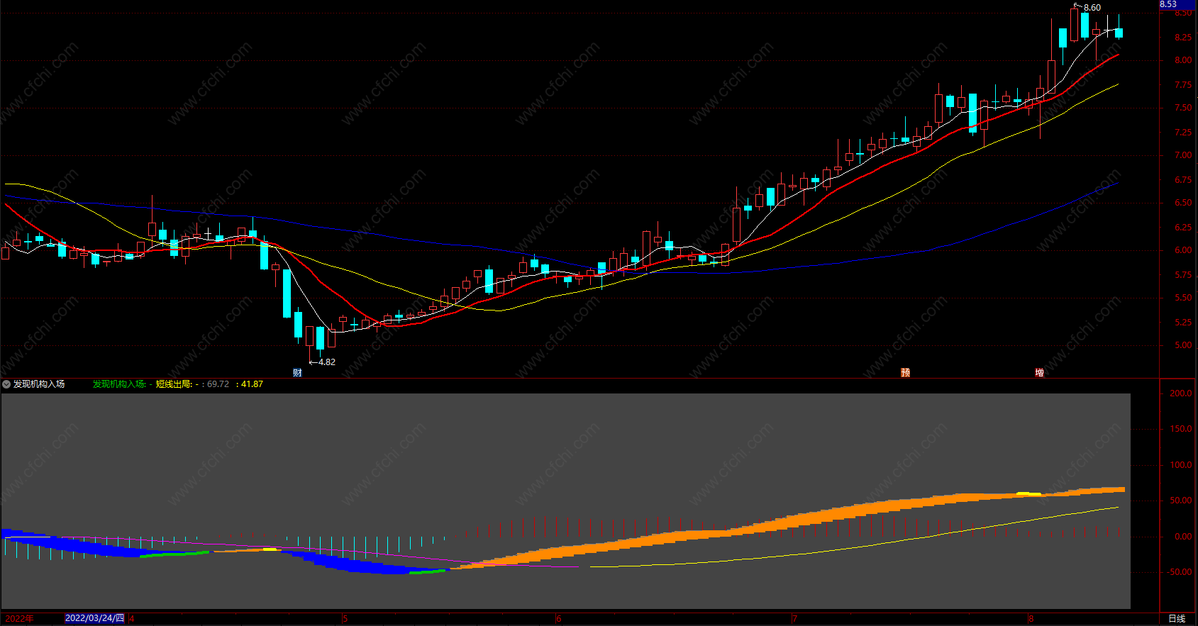 (发现机构入场 通达信买入趋势波段指标公式 副图 源码)