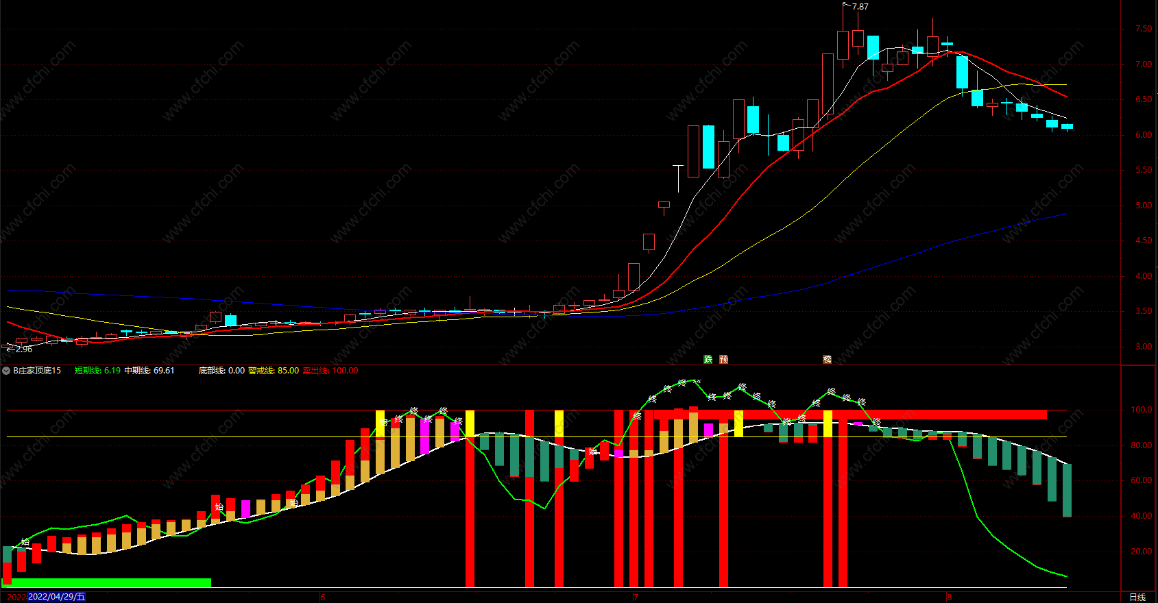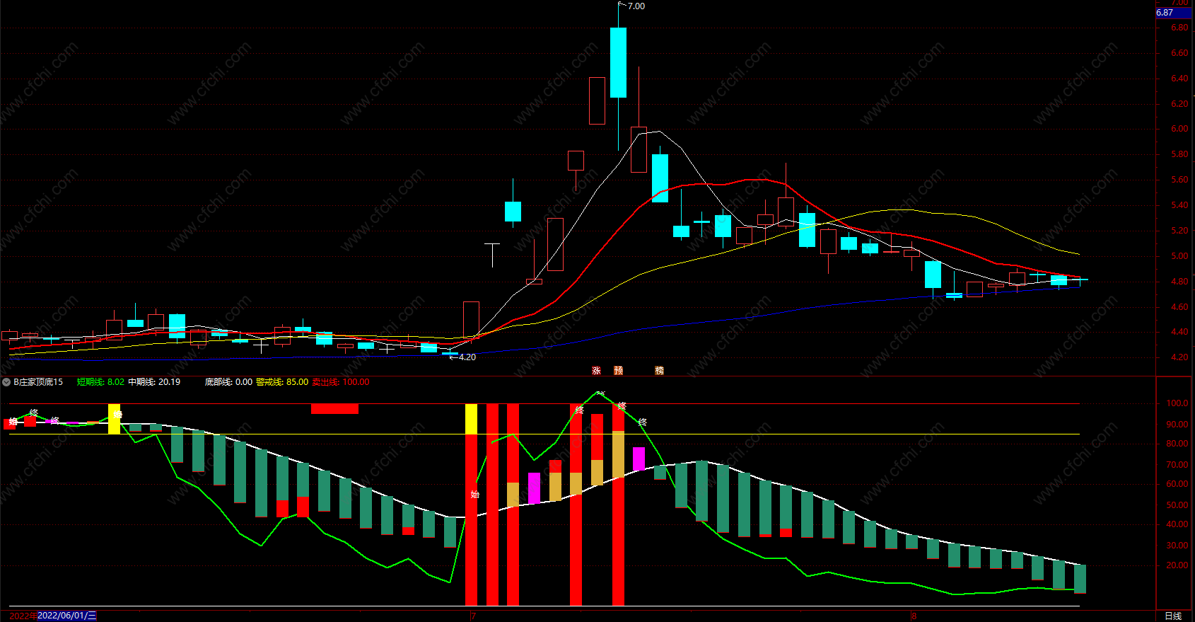 (庄家顶底 通达信炒股指标源码多空趋势指标公式 副图)