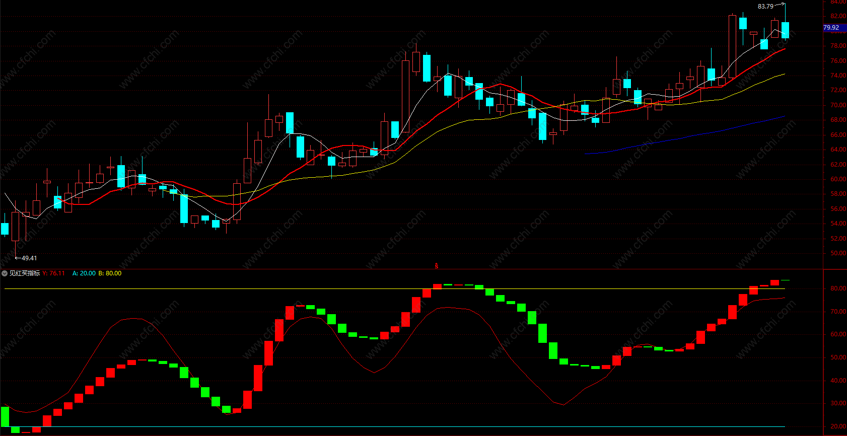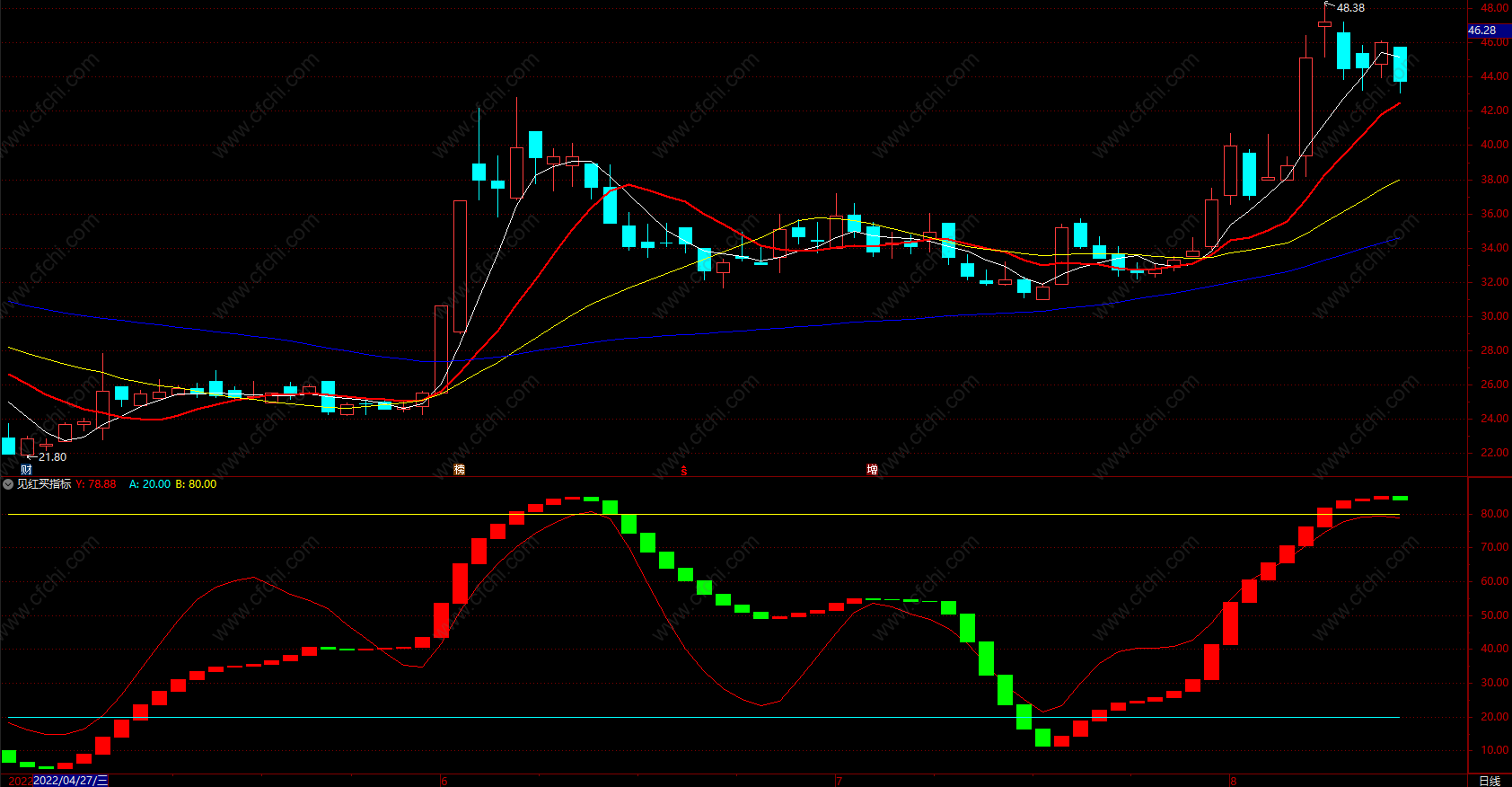财富池指标公式网(www.cfchi.com)提醒您:指标公式是通过数学逻辑角度编写而来,仅是股票分析环节中的一个辅助工具,对股票选股效率和分析便捷上起到一定的作用,股市是具有不确定性和不可预测性的,请正常对待和使用指标公式!