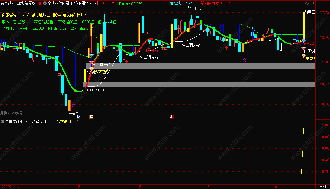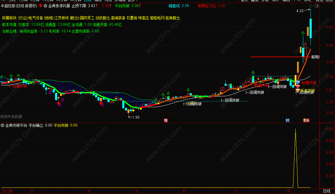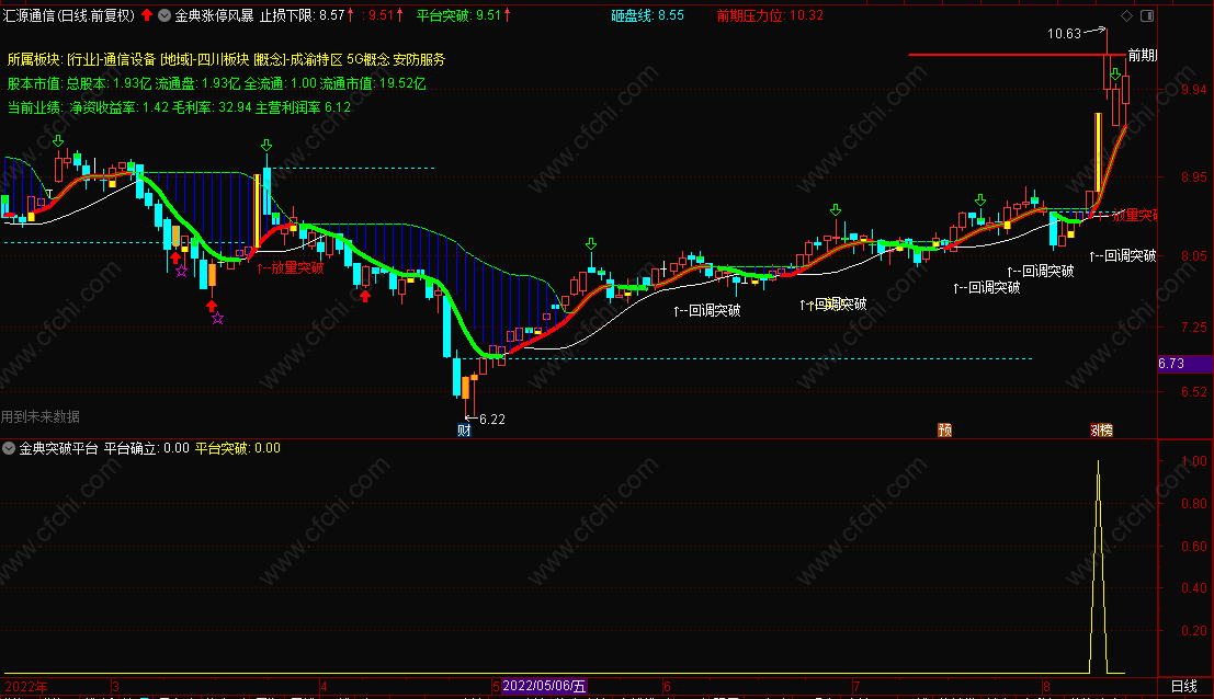 (通达信金典平台突破选股幅图指标公式,祝你股市长泓!!!)