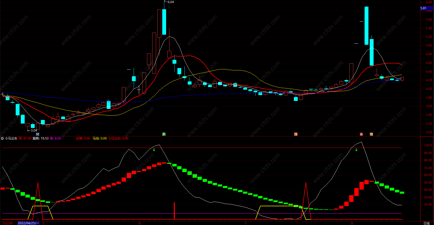 财富池指标公式网(www.cfchi.com)提醒您:指标公式是通过数学逻辑角度编写而来,仅是股票分析环节中的一个辅助工具,对股票选股效率和分析便捷上起到一定的作用,股市是具有不确定性和不可预测性的,请正常对待和使用指标公式!