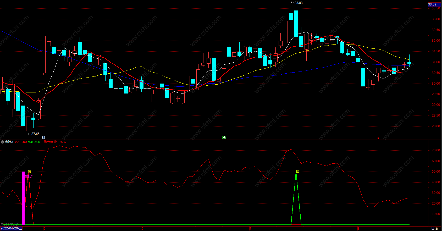 财富池指标公式网(www.cfchi.com)提醒您:指标公式是通过数学逻辑角度编写而来,仅是股票分析环节中的一个辅助工具,对股票选股效率和分析便捷上起到一定的作用,股市是具有不确定性和不可预测性的,请正常对待和使用指标公式!