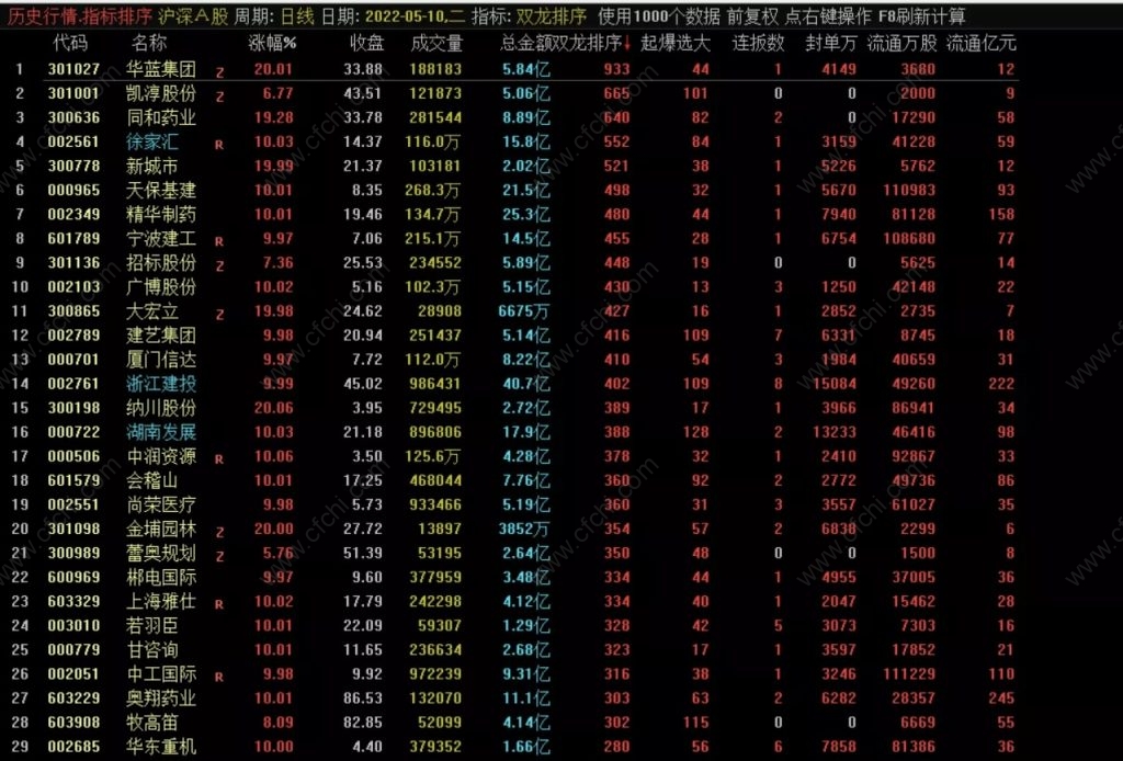 用壹德研究设计的专用强弱排序系统筛选龙头强势股,连续多年的历史数据表明:强牛妖龙十有八九都会出现在【双龙排序】