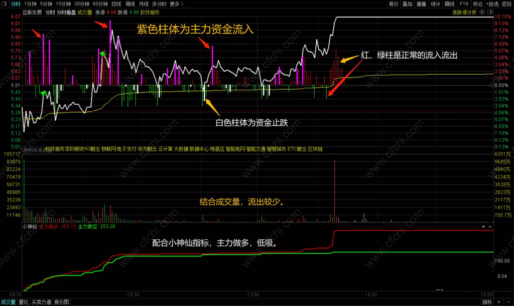精华版:分时主力吸筹:增加了买入点提示,效果不错。手机电脑都可用。
