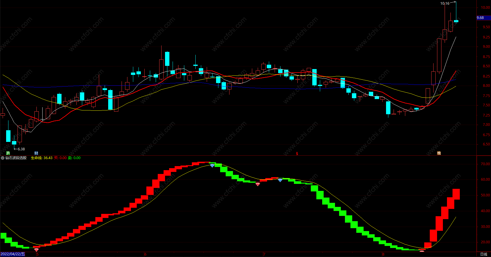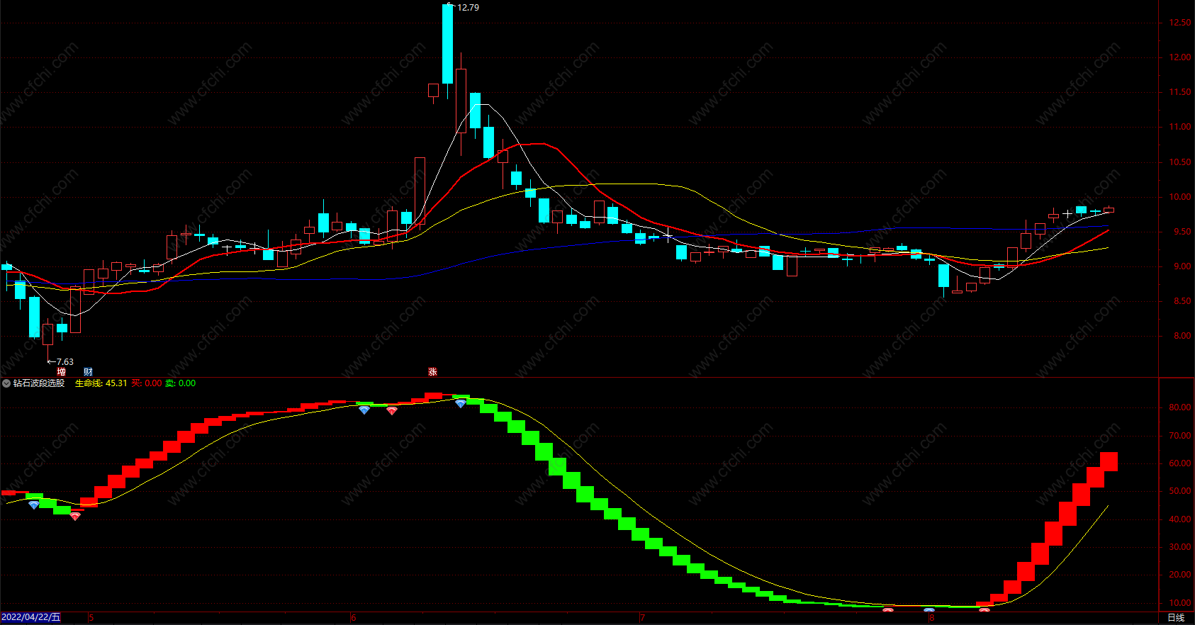 1.生命线在18以下,红色波段,红色钻石出现买入信号的成功率较大;