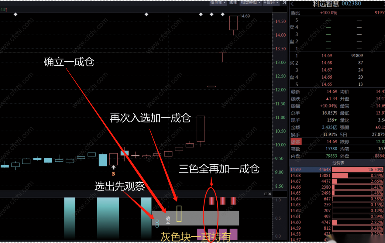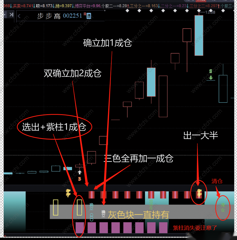 (【益盟操盘手】系列指标之仓位管理交易系统,交易提示,加仓减仓持股一目了然。非常实用指标)