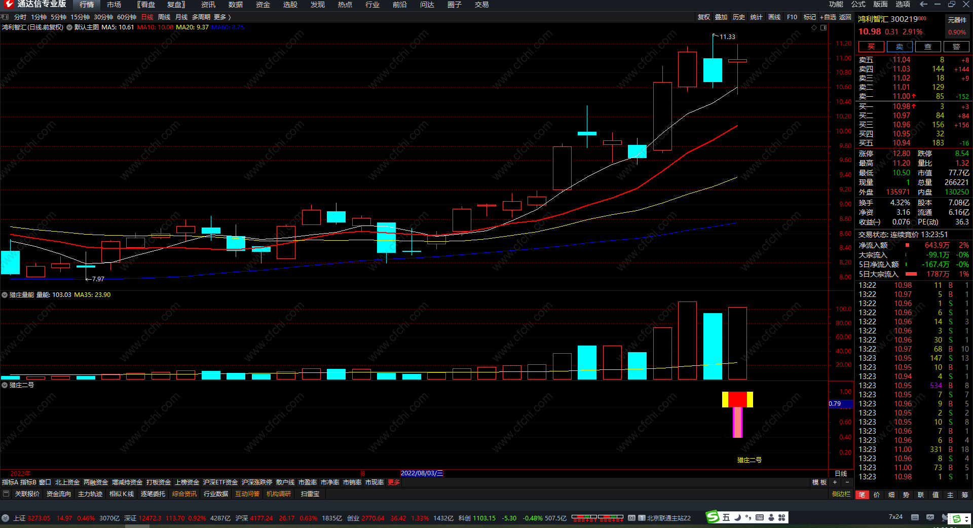 通达信〖AI量化分时〗主副图分时指标,捕捉股票在分时图上的强势启动信号,源码