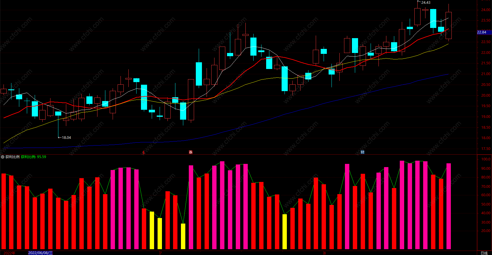 黄柱持币、红柱持股、玫红柱追涨 简单实用买卖点提示指标 副图 源码