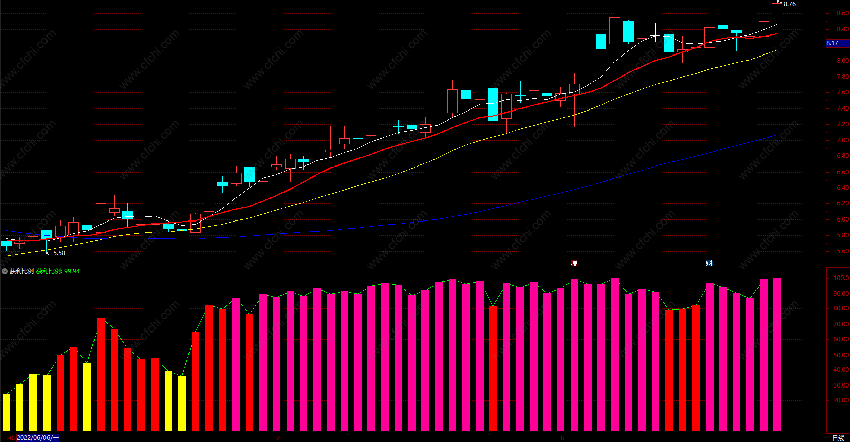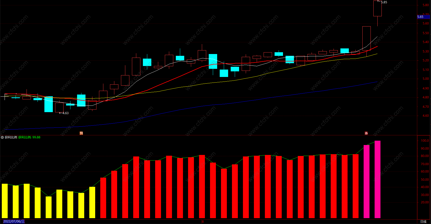 (黄柱持币、红柱持股、玫红柱追涨 简单实用买卖点提示指标 副图 源码)