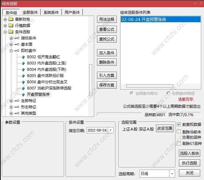 财富池指标公式网(www.cfchi.com)提醒您:指标公式是通过数学逻辑角度编写而来,仅是股票分析环节中的一个辅助工具,对股票选股效率和分析便捷上起到一定的作用,股市是具有不确定性和不可预测性的,请正常对待和使用指标公式!