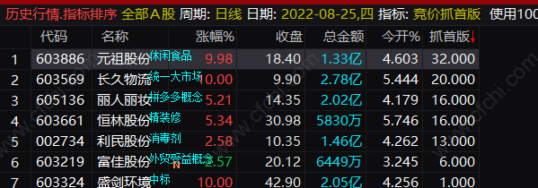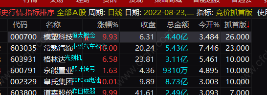 本指标是副图,专门用于集合竞价排序,数值越大越有较高的参考价值,适合竞价激进超短的同学,以下是最近几天的排序截图;仅供参考。
