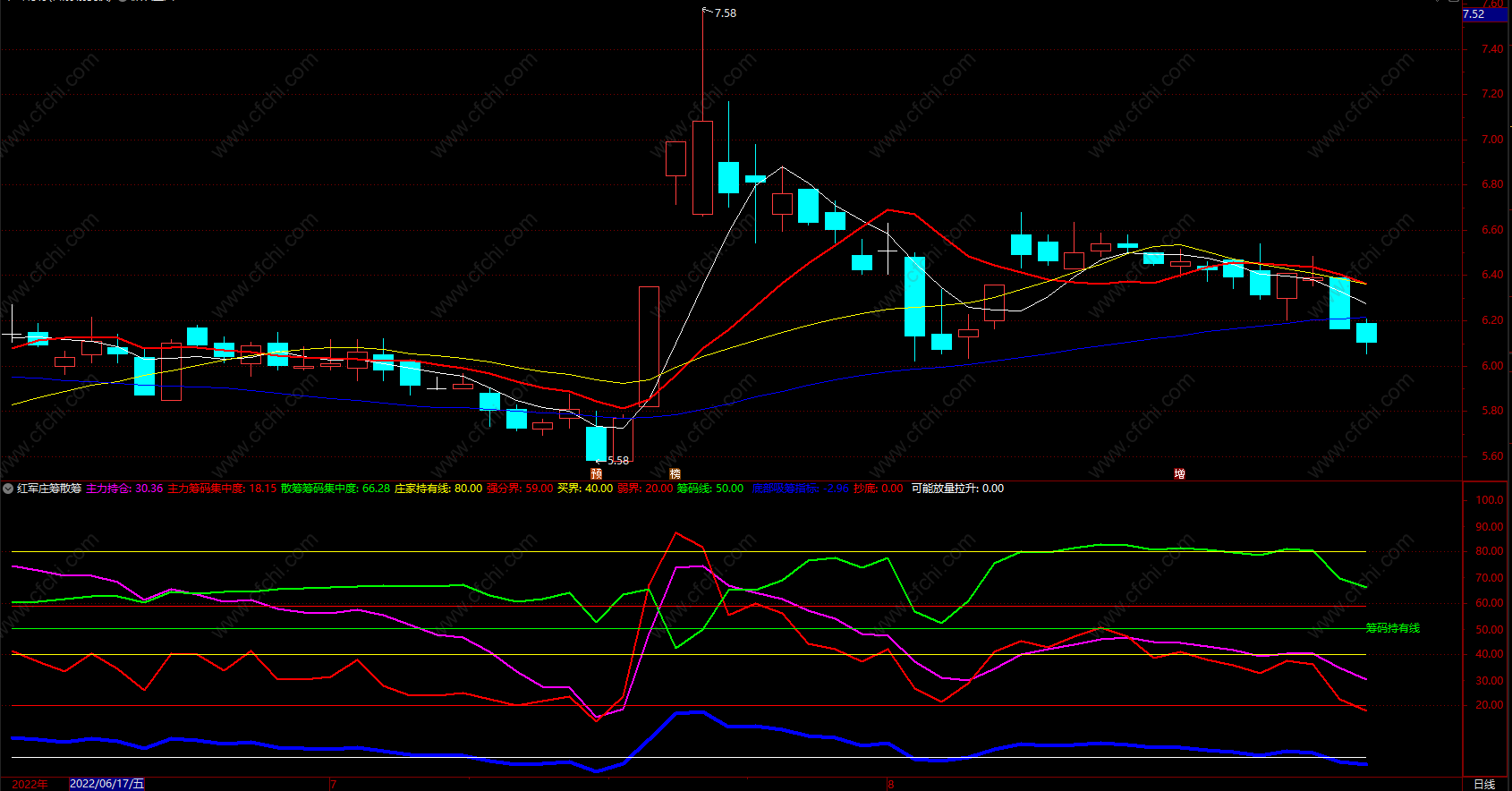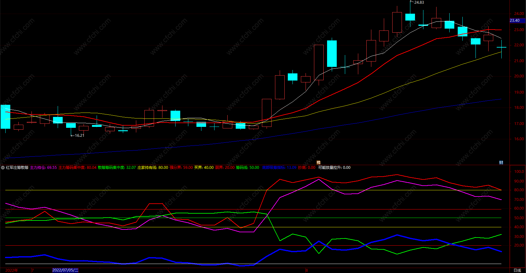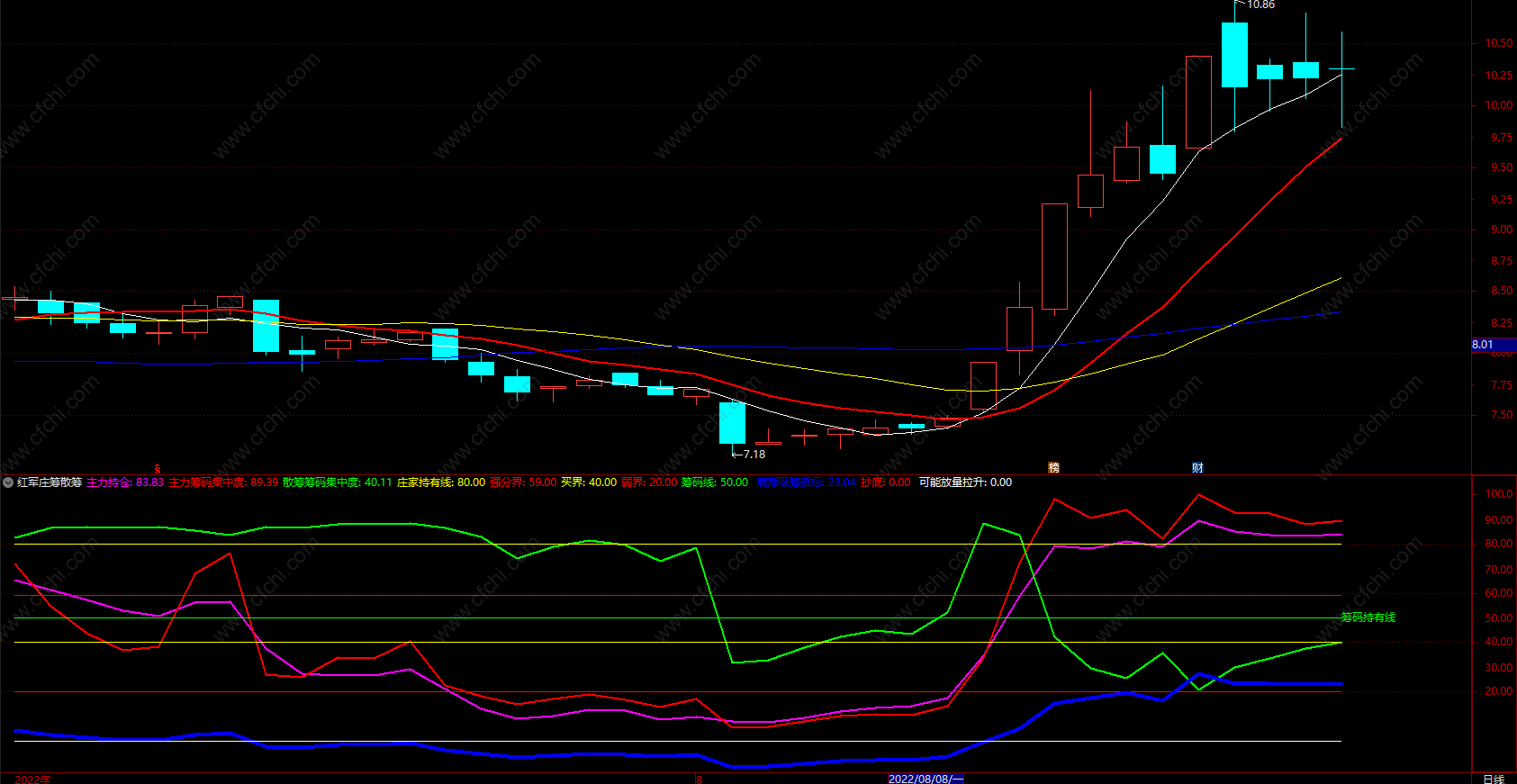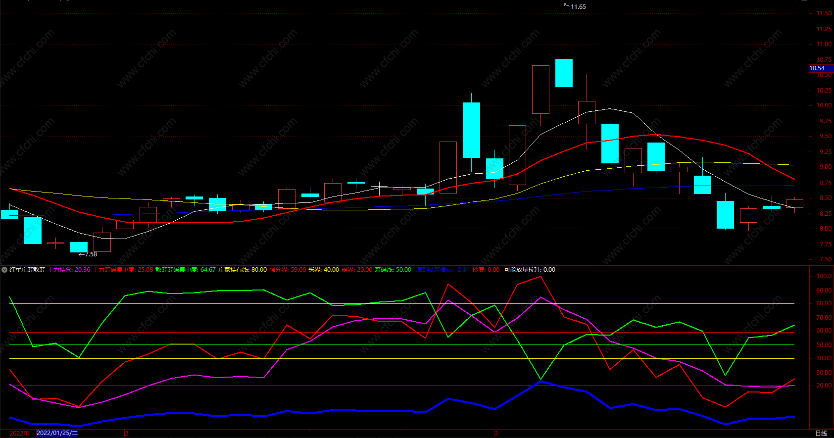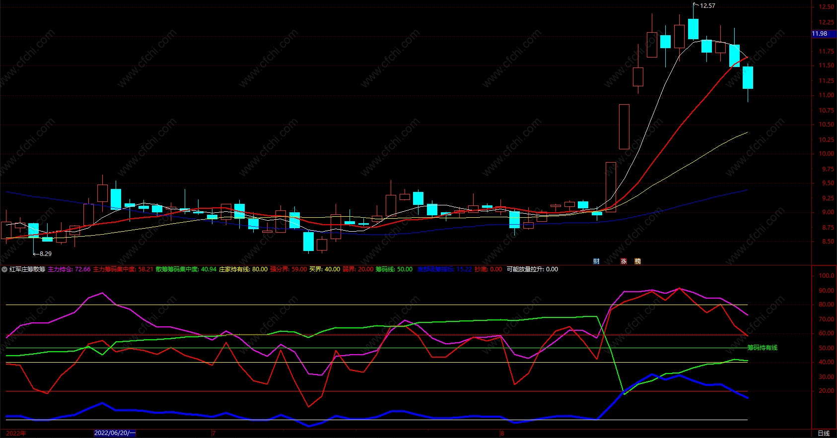 主力筹码集中度:红色线,上穿其它线时上涨趋势!