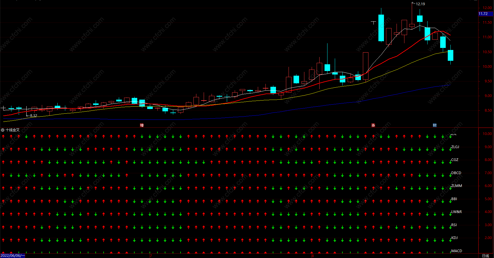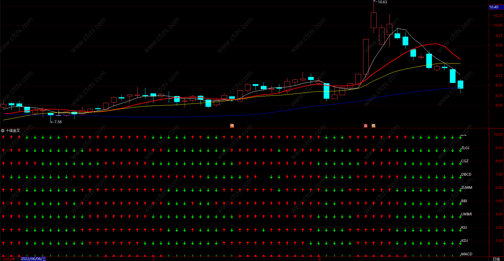 (十线金叉副图 通达信股票趋势买卖指标公式 源码)