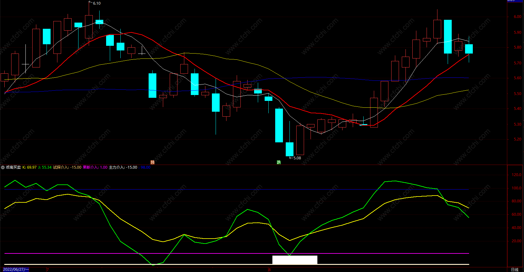 果断介入: IF(CROSS(J,VARB) AND COUNT(VAR5<-12,3)>=1,95,1),LINETHICK2,COLORMAGENTA;