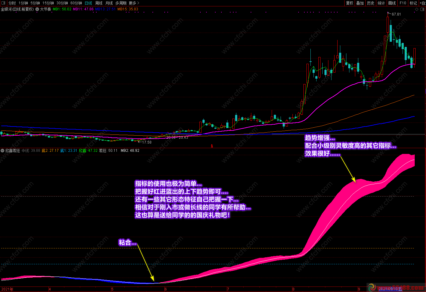 (大师廷进系列:《欣喜若狂》趋势副图指标,通吃波段,实战精品)