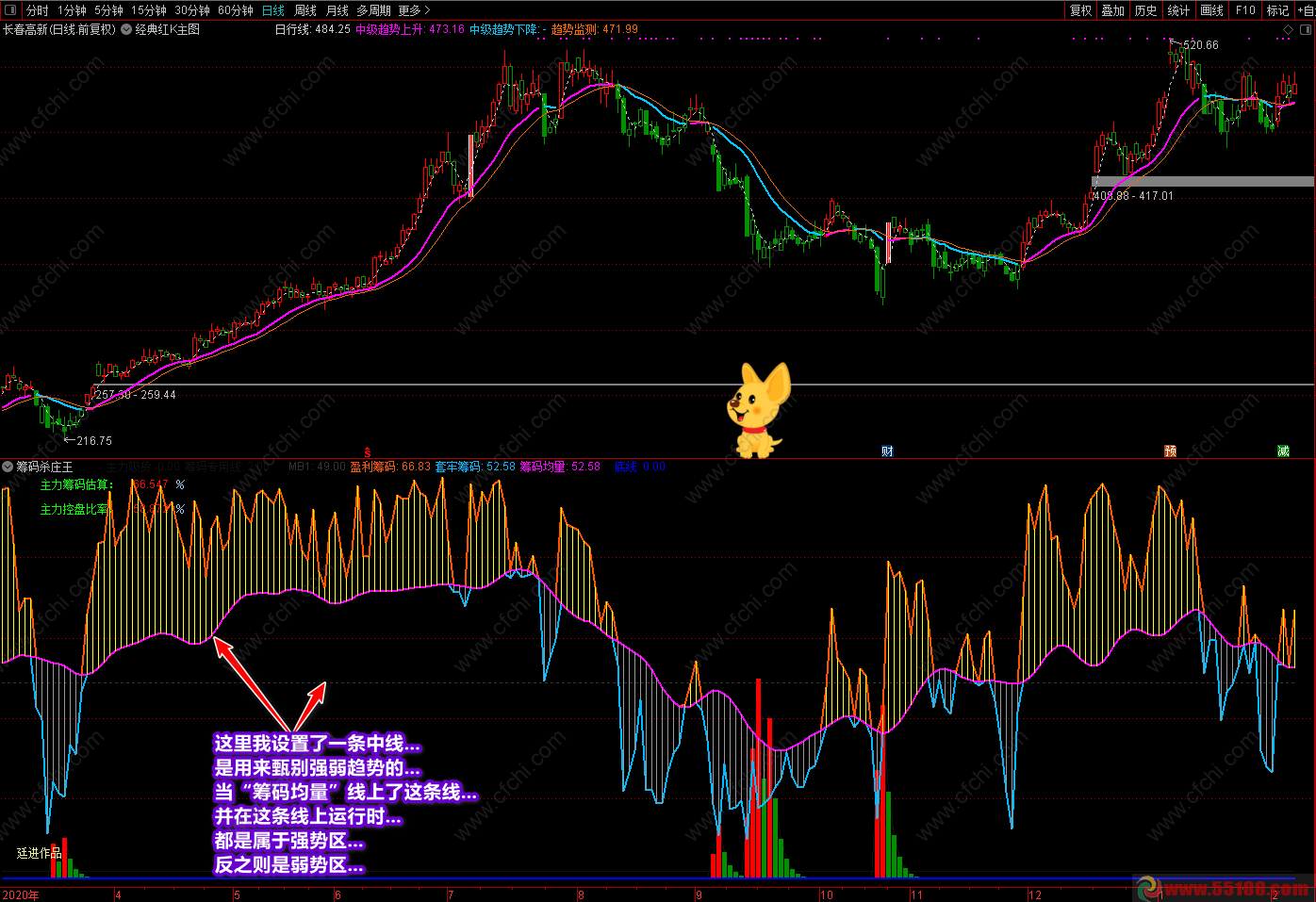 大 家通过以上篇幅可能对筹码的形态及作用有了个初步了解,那么有没有一种指标可以准确的来表现筹码的状态和位置呢?就目前来说还没有一个指标可以做到。那么有些同学会说了,那么你这指标不是起了个“筹码杀庄王”吗?不错,一个指标可以任意起个名,我将指标起这名,也就是让大家进来了解一下筹码的基本知识和作用,不会像有些帖主动不动就来个“筹码王”、“筹码杀手”什么的,说穿了那只是个噱头而已,你要叫他讲一下指标形成原理,他可能一个字都讲不出来。真正要把握好筹码的形态,只有你在正确选择好一支个股时用筹码来做个正确的决策。