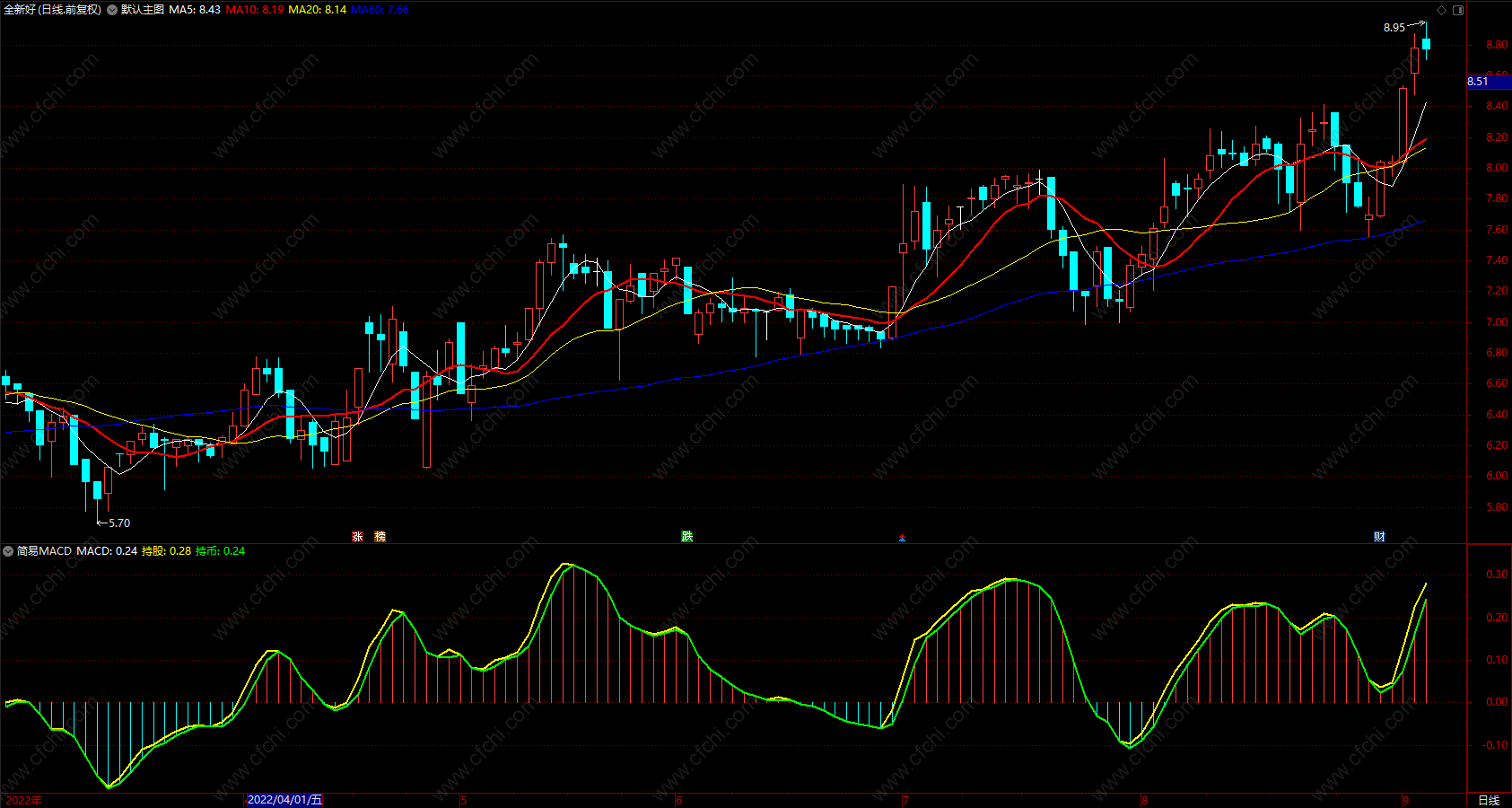 简易MACD 通达信macd趋势强度指标公式 副图 源码