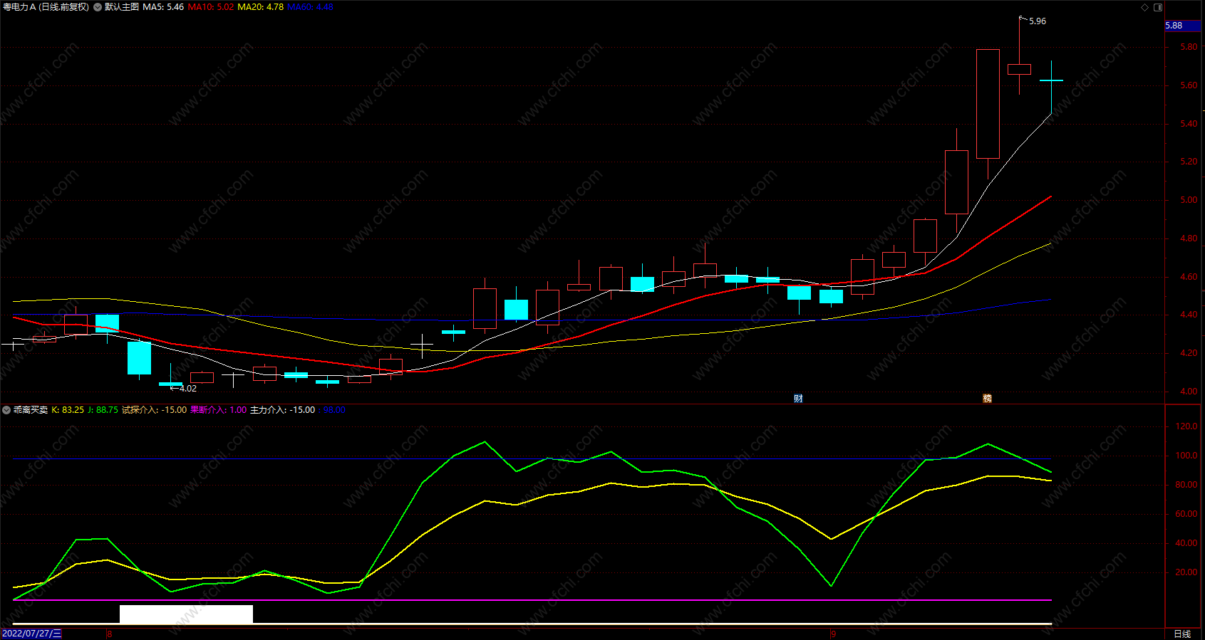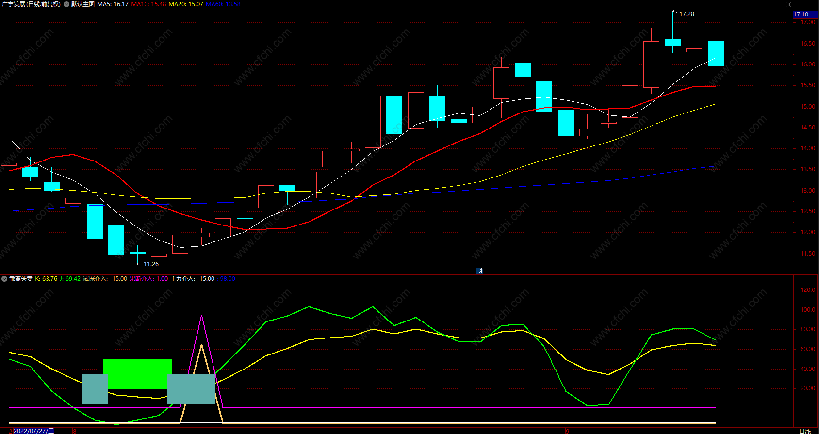 绿线下穿黄线 注意空仓!