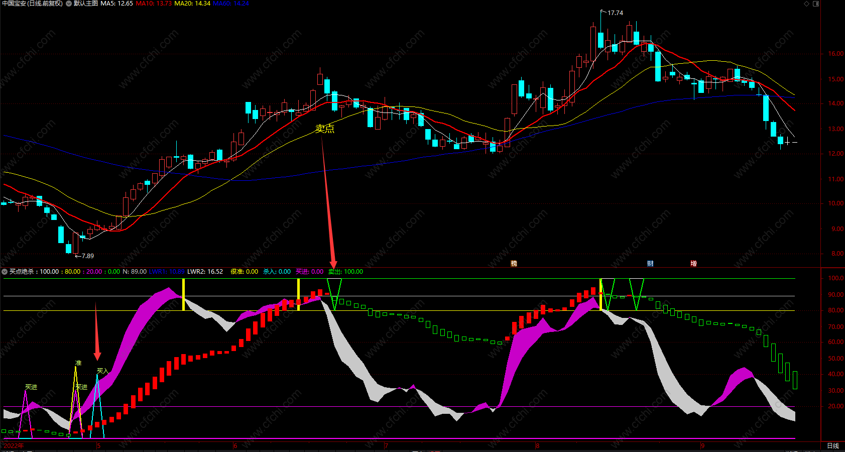 这个指标日线周线级别对波段操作或短线操作是否达到预期能有很好的指导方向作用,只要后几日连续收盘价不跌破当日信号的最低价,波段达成;
