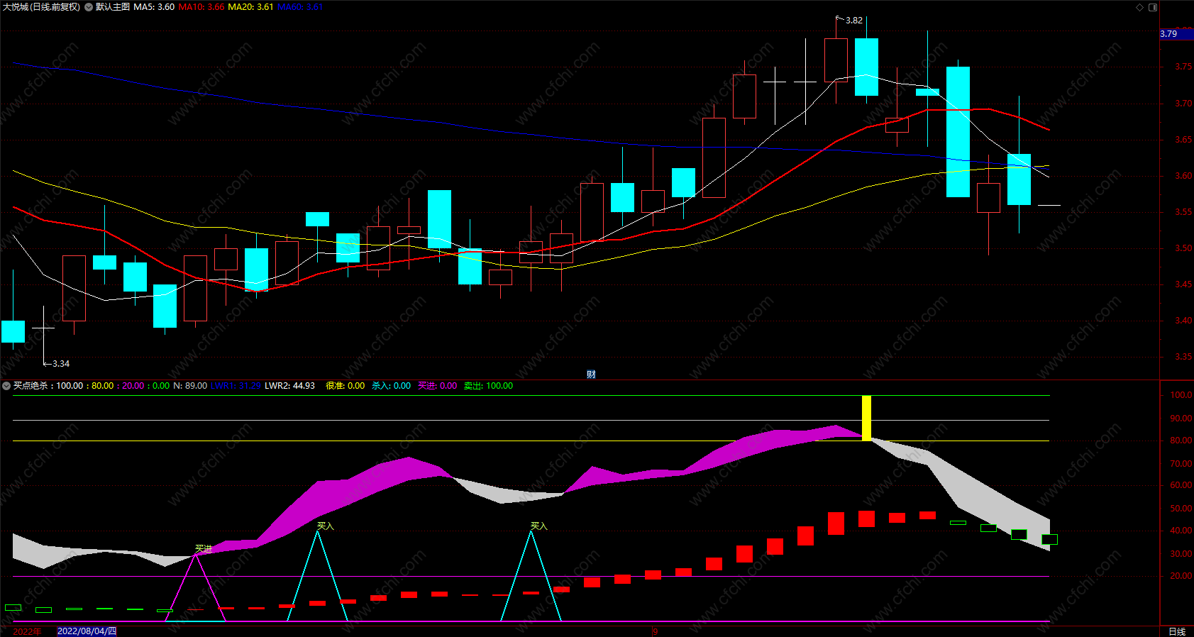 财富池指标公式网(www.cfchi.com)提醒您:指标公式是通过数学逻辑角度编写而来,仅是股票分析环节中的一个辅助工具,对股票选股效率和分析便捷上起到一定的作用,股市是具有不确定性和不可预测性的,请正常对待和使用指标公式!