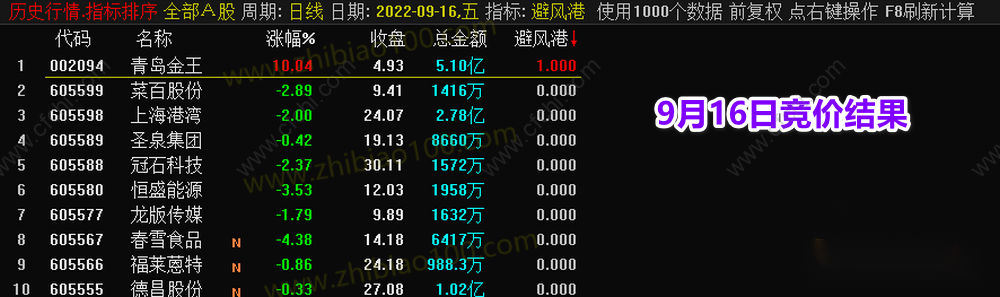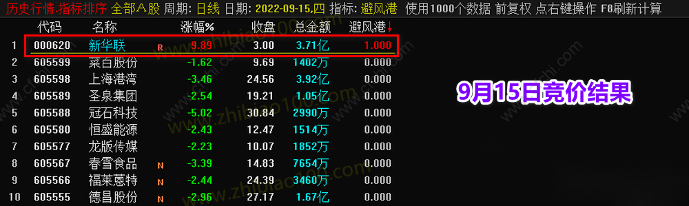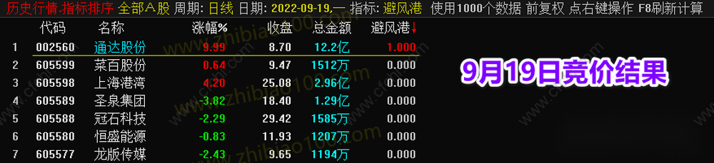 (【避风港】竞价,副图排序+选股指标,早盘竞价抓妖、全天信号不变!)