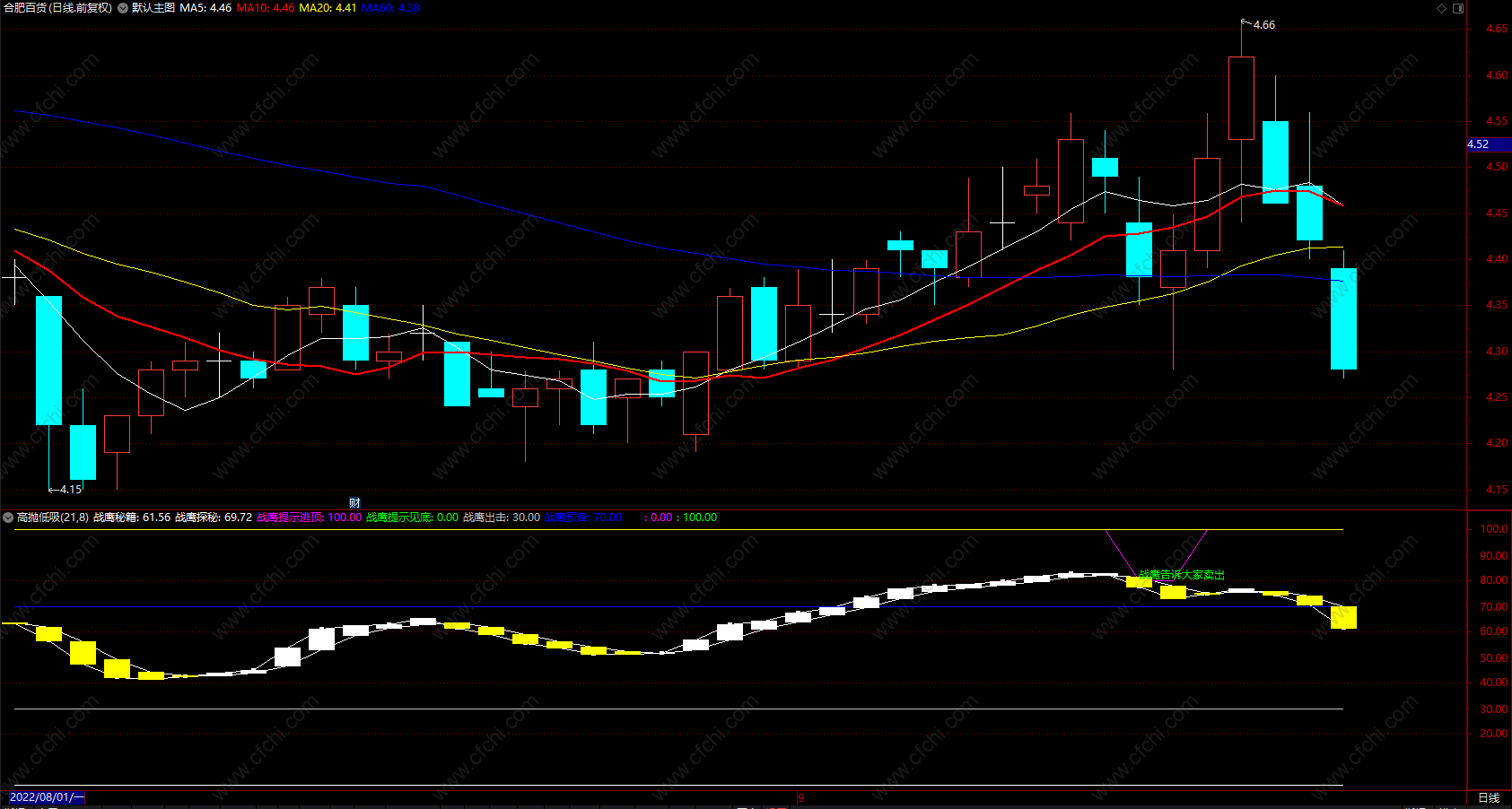 DRAWTEXT(CROSS(80,战鹰秘籍),82,'战鹰告诉大家卖出'),COLORGREEN;